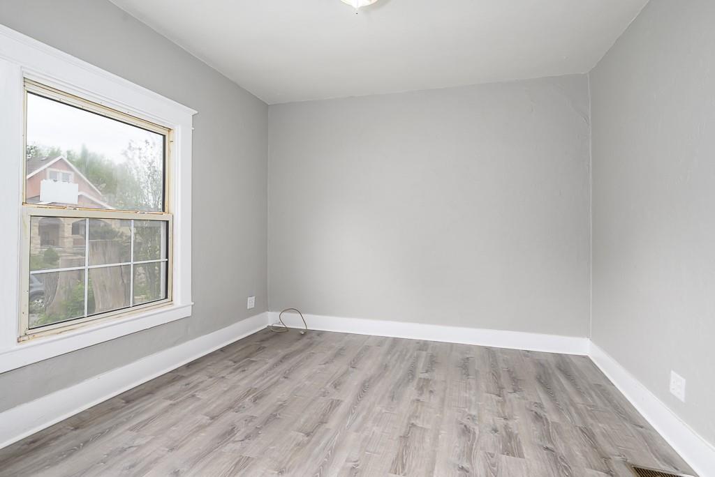 2 BDRM, 1 BTH BUNGALOW HOME W/NEW LAMINATE FLOORING THRUOUT. ROOF IS UNDER 7RS OLD, ORIGINAL WOOD WORK THRUOUT, HUGE LIVINGROOM AND DINING ROOM! LAUNDRY HOOKUPS IN BASEMENT, REFRIGERATOR & ELECTRIC STOVE/OVEN STAY WITH SALE OF PROPERTY. NEW VANITY IN BATHROOM, ENCLOSED BACKPORCH OFF KITCHEN OVERLOOKING PARTIALLY FENCED IN BACKYARD. OFFSTREET PARKING IN BACK OFF ALLEY THAT RUNS BEHIND THE HOUSES. BEING SOLD AS-IS!