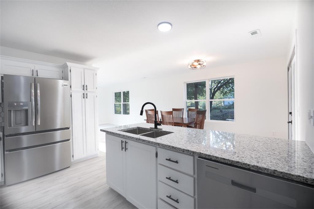 Experience the best of lake living in this stunning, fully reimagined 3 bedrooms, 2 ½ half bath, 2,100 square foot ranch-style home. Located on a sought-after second-tier lot in Lake Dabinawa, this property offers the perfect blend of modern luxury and effortless one-level living, all while keeping the water just a stone's throw away. Step inside to a bright, floor plan featuring new paint, vinyl plank flooring, LED lighting, fans, interior and exterior doors, windows, exterior paint. The kitchen boasts brand-new stainless appliances, and granite countertops. Every inch has been updated, including the natural stone vanities, bathroom tile and showers. 2 car oversized garage and shed. Transition seamlessly to enjoy the peaceful outdoors, with the beach, gazebo, boat dock a few minutes’ walk away for kayaking, fishing and hanging out. Lake vibes, but you’re only 20 minutes from Lawrence, 30 from Topeka and 50 from downtown KC.