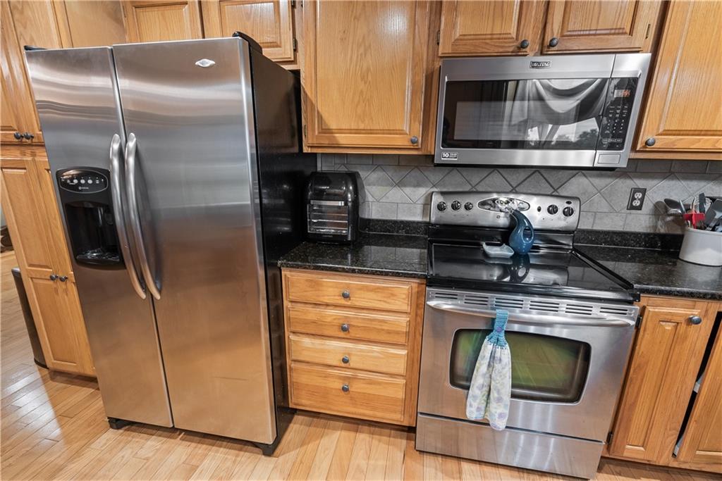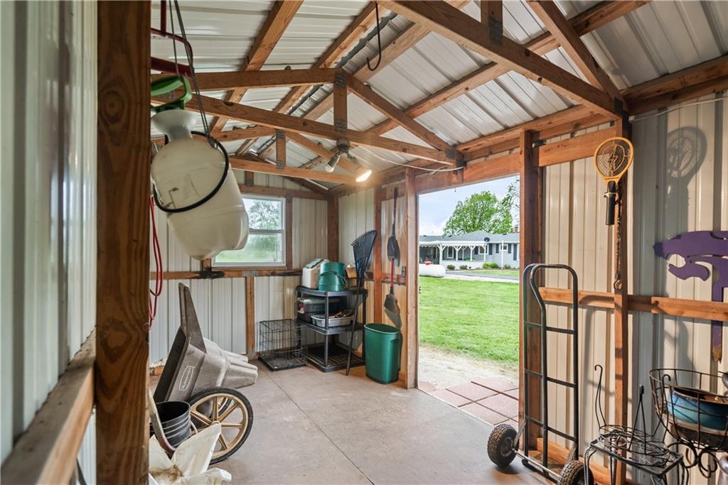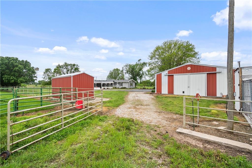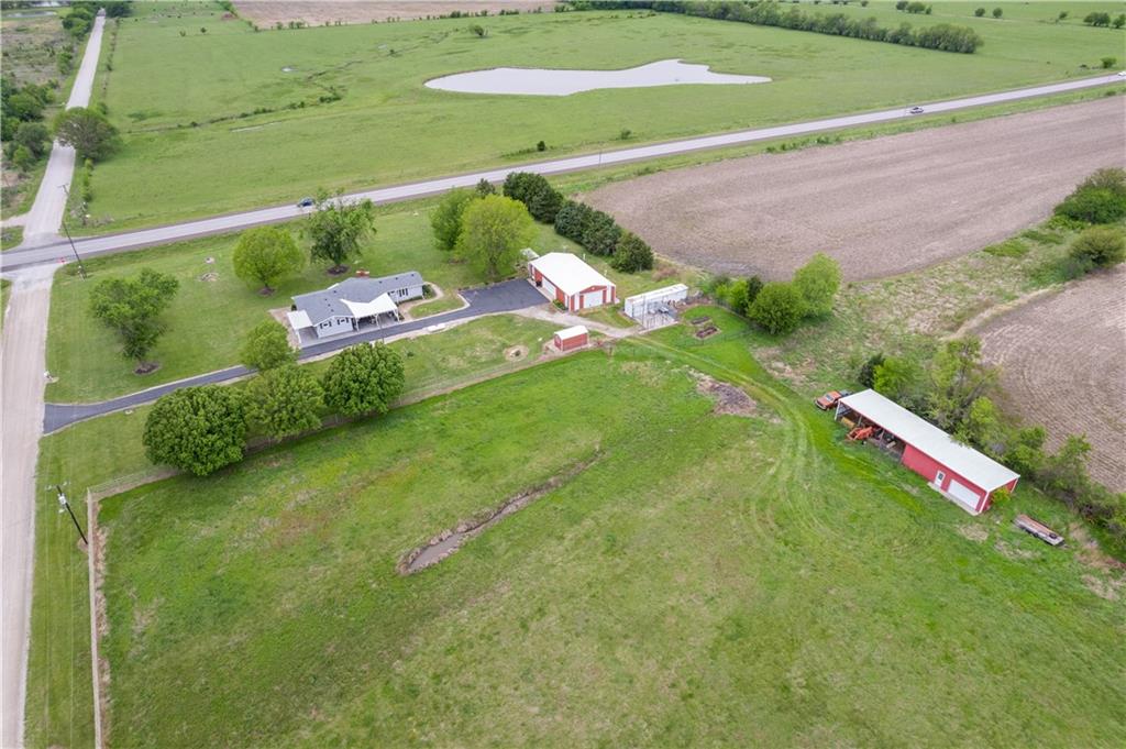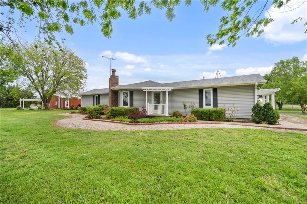 If you’ve been dreaming of a little space to spread out without giving up comfort, this one feels like home the minute you pull in. Set on 9.13 acres, this 3 bedroom, 2 bath ranch offers 1,793 square feet of easy, single-level living with room to breathe inside and out. Step through the door and you’re welcomed by warm hardwood floors that run throughout the home, creating a cozy, connected feel. The living area centers around a wood-burning fireplace, perfect for slow evenings and gathering with family or friends. The kitchen brings a touch of modern style with granite countertops, and all appliances stay, making the move-in process simple. Both bathrooms have been updated with LVP flooring for durability and style, while central HVAC keeps things comfortable year-round. Updated windows and insulated siding help create a quieter, more efficient space, even with the convenience of nearby highway access. Outside is where this property really starts to tell its story. Whether you're working, tinkering, or just need extra storage, the detached 2 car garage/shop is ready to go with two overhead doors and its own wood-burning stoves. There’s also an additional outbuilding with an overhead door and lean-to, plus a small shed for all the extras. Dog pens are already in place and will stay, making it easy for your four-legged companions to settle in too. You’ll find yourself drawn to the outdoor spaces, from the covered east-facing patio that’s perfect for morning coffee to the pergola patio on the south side, ideal for winding down at the end of the day. With a roof that’s only 5 years old and low-maintenance vinyl siding, the big items are already taken care of. This is the kind of place where you can slow down a bit, enjoy the land, and make it your own, whether that means gardening, hobbies, or simply enjoying the quiet of country living.