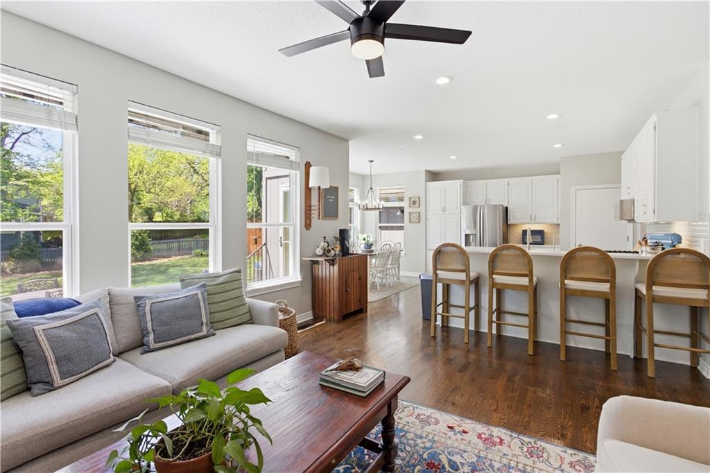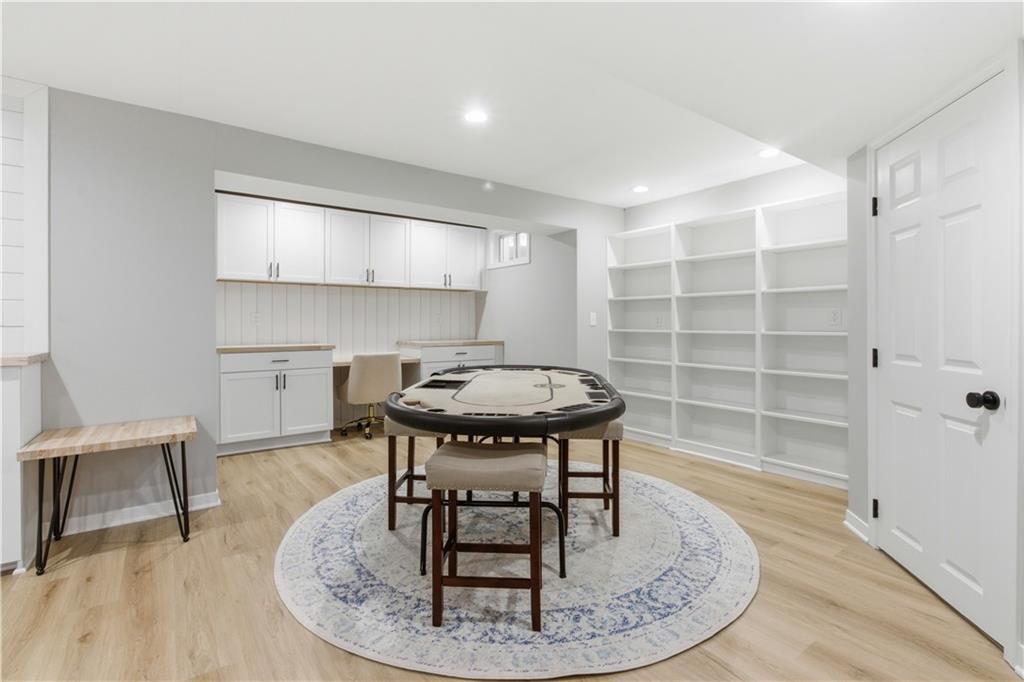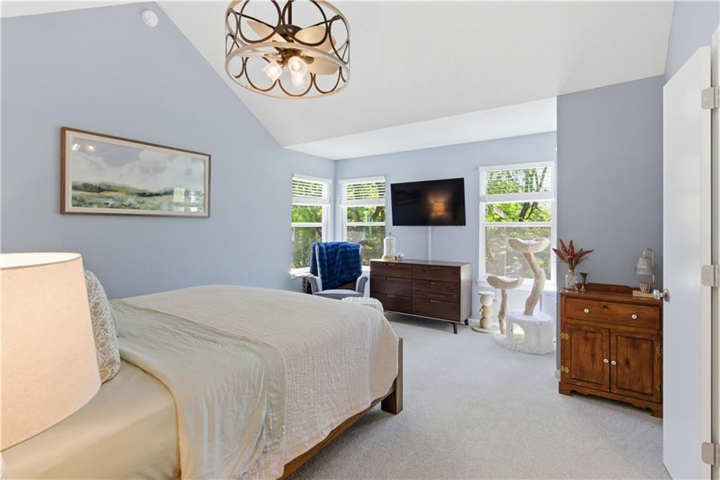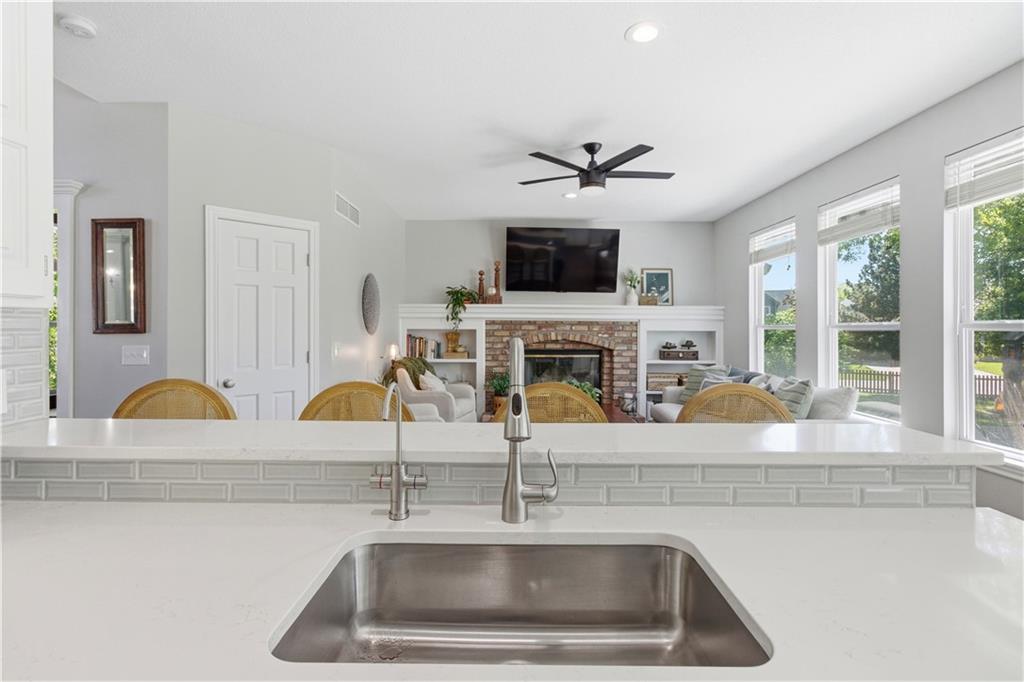 Meticulously maintained home offering exceptional curb appeal with updated landscaping and sprinkler system front and back. Cul-de-sac tucked inside the Eastbrooke subdivision. Inside, enjoy a formal living room with custom built-ins and a stunning fireplace, plus a versatile front flex room. The remodeled kitchen boasts white cabinetry, quartz countertops, designer tile backsplash, gas range, and spacious eat-in area flooded with natural light. SO much space in this kitchen, plenty of cabinets/counter space. Reverse osmosis water filter at kitchen sink. Smart home features include ring cameras, smart garage and thermostat. Beautiful wood floors flow throughout the main level. Half bath with beautiful tile! Upstairs, the spacious master suite features a luxurious bathroom with heated tile floors and impressive walk-in closets. Separate tub/shower and dual vanities. Secondary bedrooms are generously sized with updated bath. The finished lower level provides ample living space with a rec room, custom built-ins, study nook, and abundant storage including a battery backup sump pump. The expansive fenced backyard includes a spacious patio, vibrant landscaping, level yard space, and a custom workshop off the garage. Great for tool storage or wood shop. Neighborhood trails connect to the Indian Creek Trail system. This home is truly move-in ready and close to schools, shopping, dining and more!