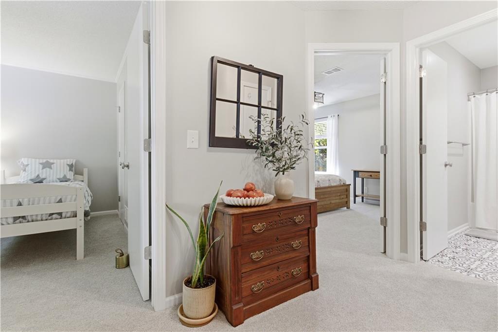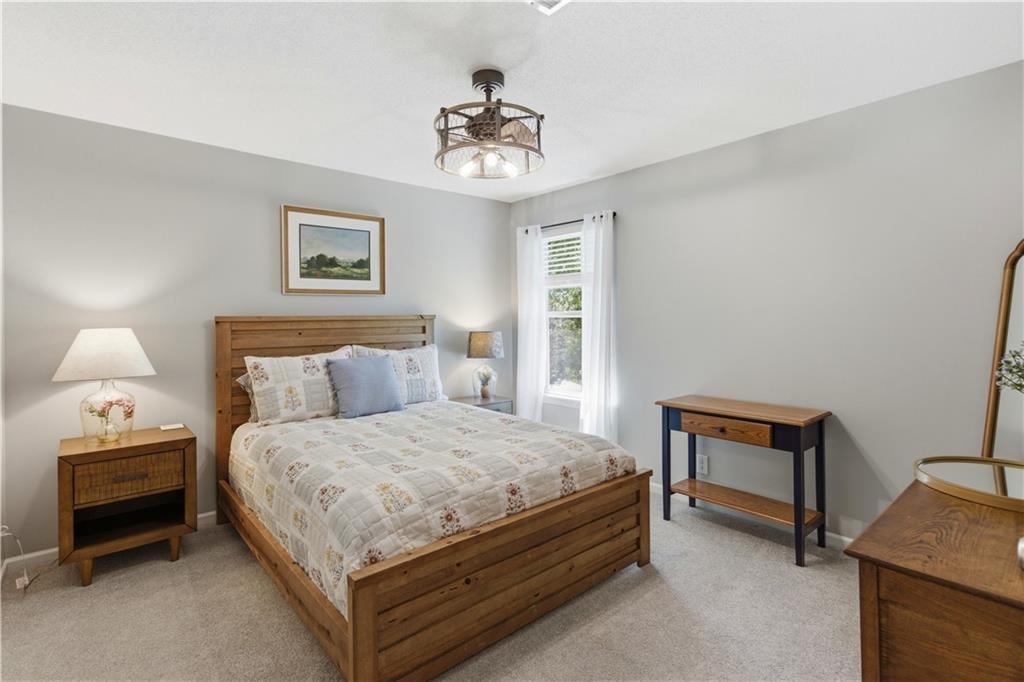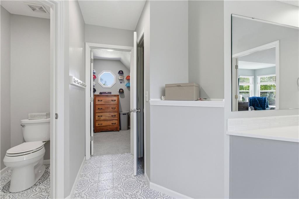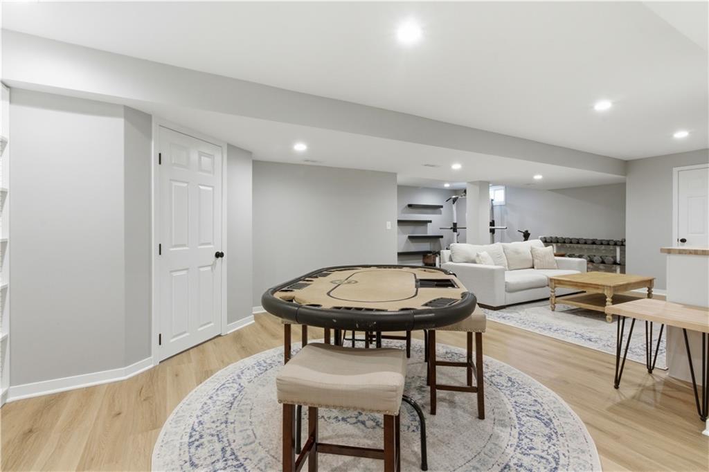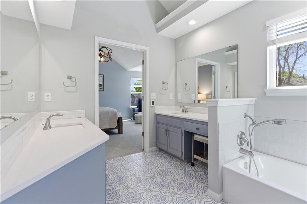 Meticulously maintained home offering exceptional curb appeal with updated landscaping and sprinkler system front and back. Cul-de-sac tucked inside the Eastbrooke subdivision. Inside, enjoy a formal living room with custom built-ins and a stunning fireplace, plus a versatile front flex room. The remodeled kitchen boasts white cabinetry, quartz countertops, designer tile backsplash, gas range, and spacious eat-in area flooded with natural light. SO much space in this kitchen, plenty of cabinets/counter space. Reverse osmosis water filter at kitchen sink. Smart home features include ring cameras, smart garage and thermostat. Beautiful wood floors flow throughout the main level. Half bath with beautiful tile! Upstairs, the spacious master suite features a luxurious bathroom with heated tile floors and impressive walk-in closets. Separate tub/shower and dual vanities. Secondary bedrooms are generously sized with updated bath. The finished lower level provides ample living space with a rec room, custom built-ins, study nook, and abundant storage including a battery backup sump pump. The expansive fenced backyard includes a spacious patio, vibrant landscaping, level yard space, and a custom workshop off the garage. Great for tool storage or wood shop. Neighborhood trails connect to the Indian Creek Trail system. This home is truly move-in ready and close to schools, shopping, dining and more!