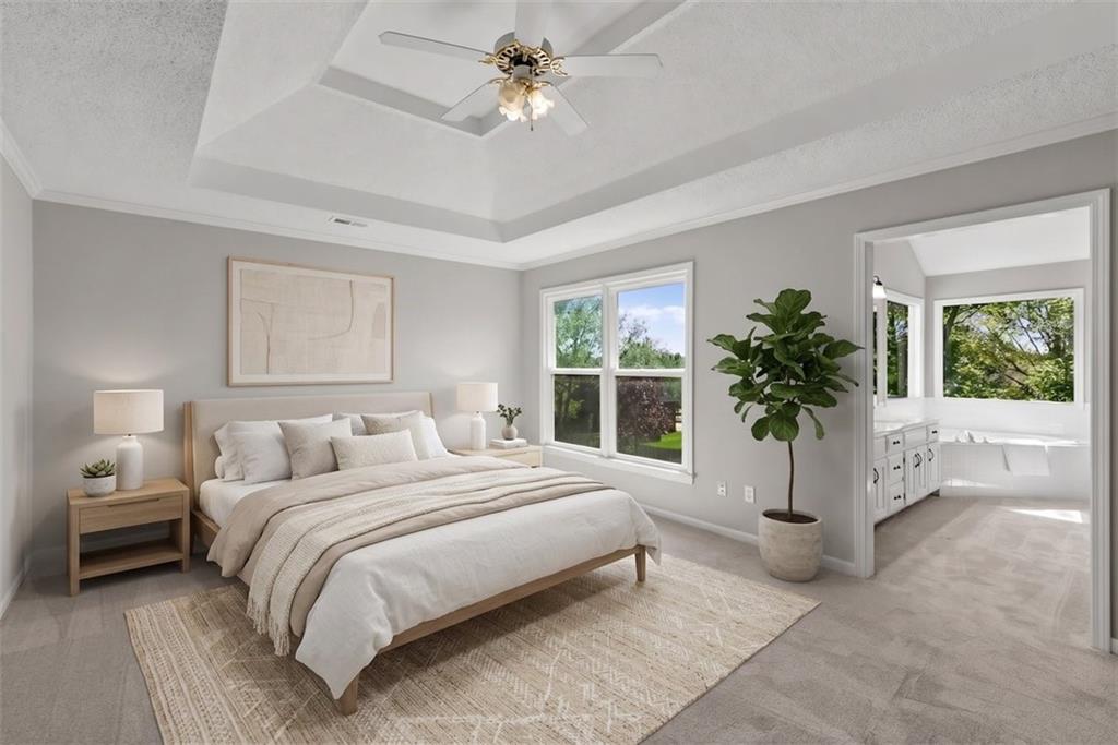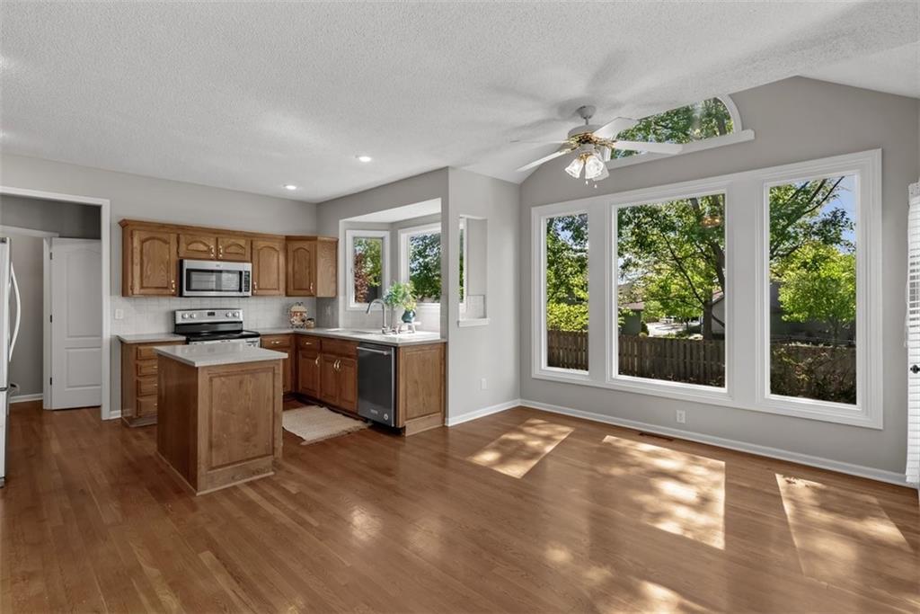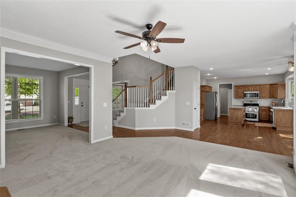 OPEN HOUSE Cancelled for Sunday, April 26 PLEASE SUBMIT ALL OFFERS BY 5PM SATURDAY, April 25 Gorgeous ~ MOVE IN READY! This 2 story home is ready for it's new owners with Brand New Carpet and Interior Paint throughout. The beautiful kitchen includes wonderful counter space, plenty of cabinets and an island. Such an easy flow between kitchen and living spaces for family and entertaining. Family room includes a beautiful fireplace for cozy nights flowing into a second, formal living room space. Hardwood floors give a warm, charming feeling to this home as well as lots of bright, natural lighting throughout. First level also includes a formal dining room, which could also be used as a study/office area. Upstairs boasts 4 large bedrooms with wonderful walk in closets! Laundry is also on the second level, in the hallway which is SO desirable! Along with the new carpet and paint the owner has added several updates including fixtures and fresh landscape. Basement is unfinished, leaving it to endless possibilities! More family living space, a personal gym, play room, rec room, more storage? Make it your own. This home is located in beautiful Overland Park with quick access to HWY69, with wonderful shopping and restaurants nearby. It is minutes to the Blue Valley Recreation Activity Center and in the Blue Valley School District. Easy to show! Schedult your tour today and ~ Welcome Home!