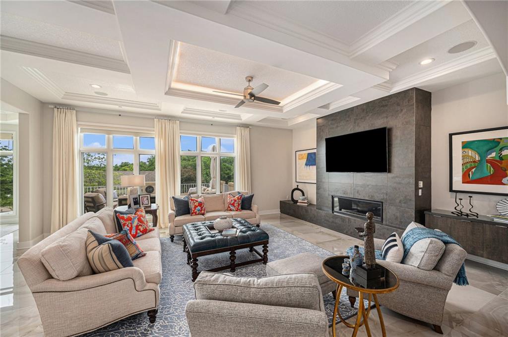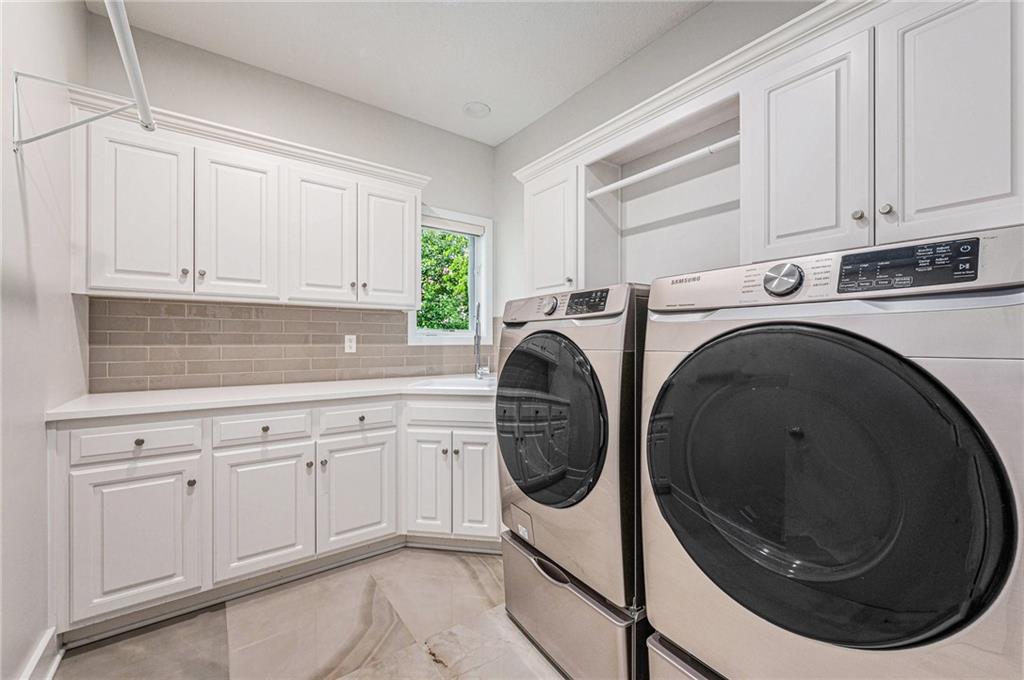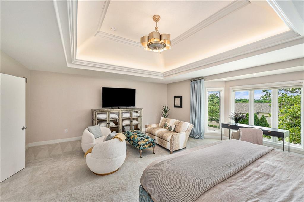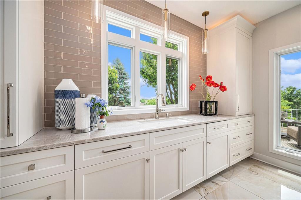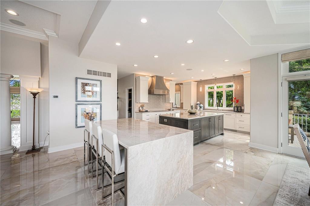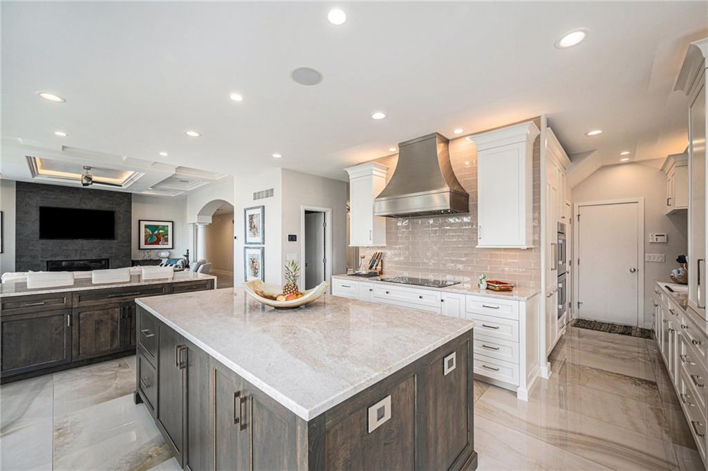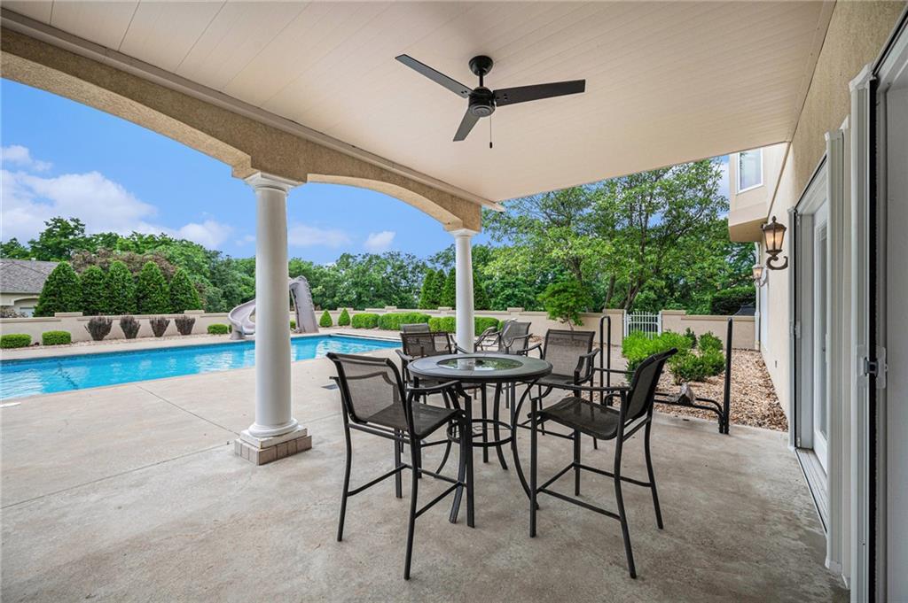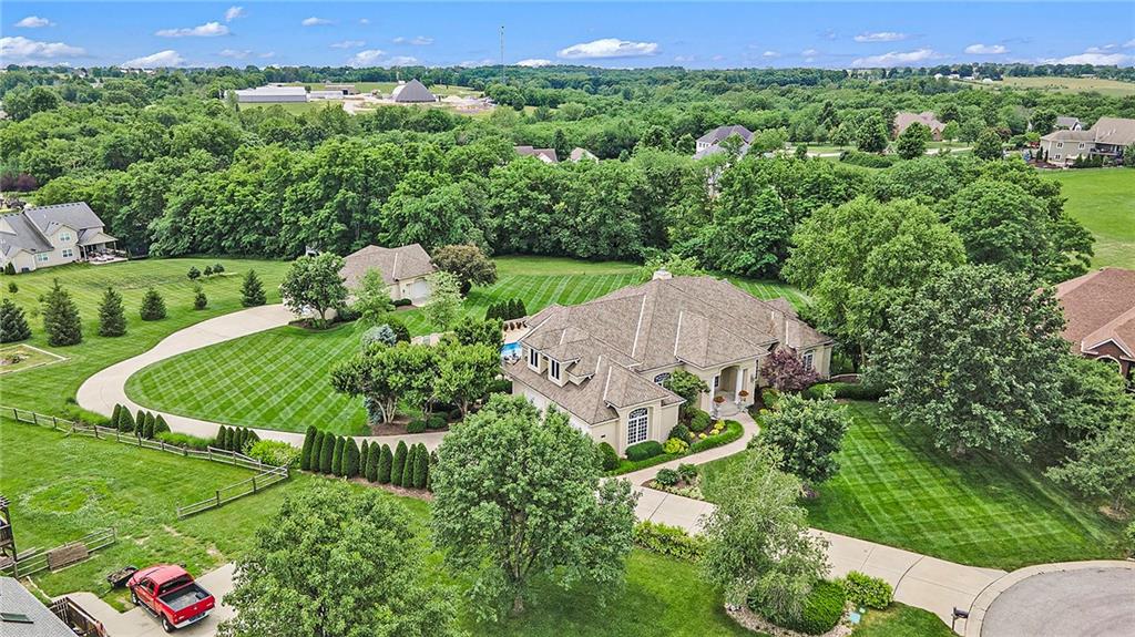 Experience tranquility and sophistication in this stunning 1.8-acre estate, ideally located just outside Kearney city limits and less than 30 minutes from downtown Kansas City, MO. Reimagined in 2021 by Portfolio Kitchen & Home, this home blends modern luxury with timeless elegance. Expansive floor-to-ceiling windows fill the main level with natural light while showcasing views of the sparkling 20’x40’ granite pool. The chef’s kitchen impresses with dual ovens, two Quartzite islands, a butler’s pantry with prep sink, Bosch and Wolf appliances, a wine refrigerator, hidden microwave and coffee station, and a spacious walk-in pantry. The lower level is perfect for entertaining, featuring a 128” projection screen with surround sound, custom wine cellar, sunken bar, exercise room, craft/dining area, and a large game space. A 60’x30’ outbuilding with an adjoining 28’x13’ RV bay includes heating, cooling, concrete floors, and a half bath. Refer to supplements for a complete list of additional features.