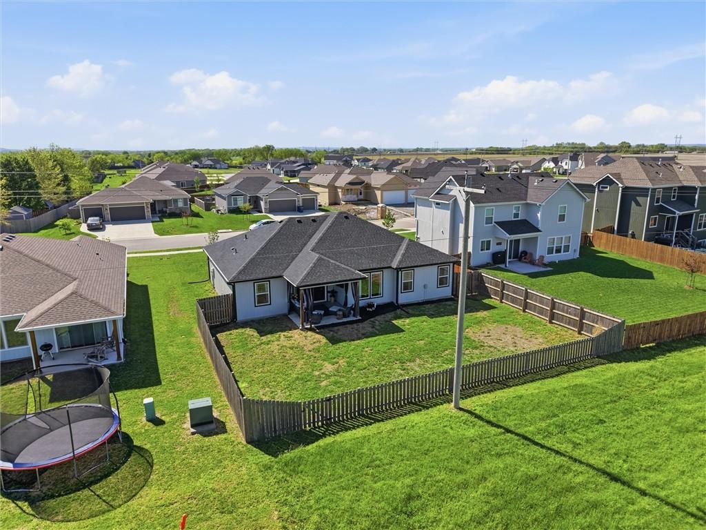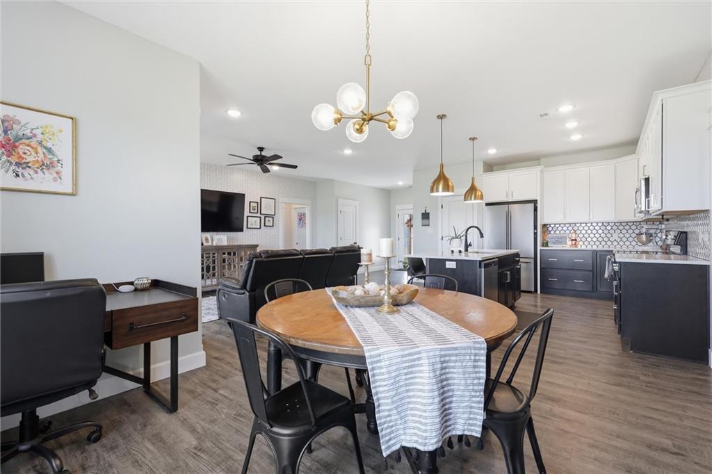 This nearly new home, built in 2023, is located in Shadow Ridge and sits directly behind Eudora Middle School. The open living space flows out to the covered back patio and fully fenced backyard. The kitchen features a large island, white quartz countertops, a walk-in pantry, and all kitchen appliances stay. The primary bedroom offers an en suite bath and a large closet, while the other two bedrooms are located on the opposite side of the home. Enjoy the benefits of a newer home with added personal touches throughout, such as fresh paint, wallpaper, and upgraded fixtures.