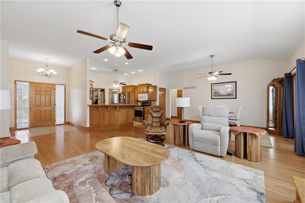 Welcome home to this beautifully maintained ranch offering the perfect blend of comfort, space, and functionality! This 3 bedroom, 2 bath home features an inviting open layout with hardwood floors, soaring ceilings, and a spacious living room centered around a cozy fireplace. The kitchen offers abundant cabinet space, stainless steel appliances, generous countertops, and a large walk-in pantry sure to impress. Relax in the oversized primary suite complete with private bath featuring double vanities, soaking tub, separate shower, and walk-in closet. Enjoy year-round natural light in the sunroom/flex space—perfect for an office, hobby room, or additional living area. The full unfinished basement provides endless opportunities for future finish, storage, or recreation space. Exterior maintenance is a breeze with brick and vinyl and features include a 3-car garage, covered front porch, and well-kept yard. There is also an all season sunroom with heating and cooling and tinted windows. This move-in ready home offers one-level living with room to grow!