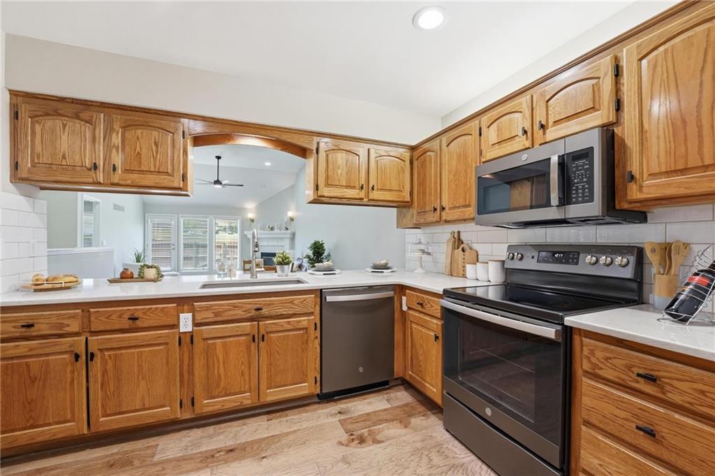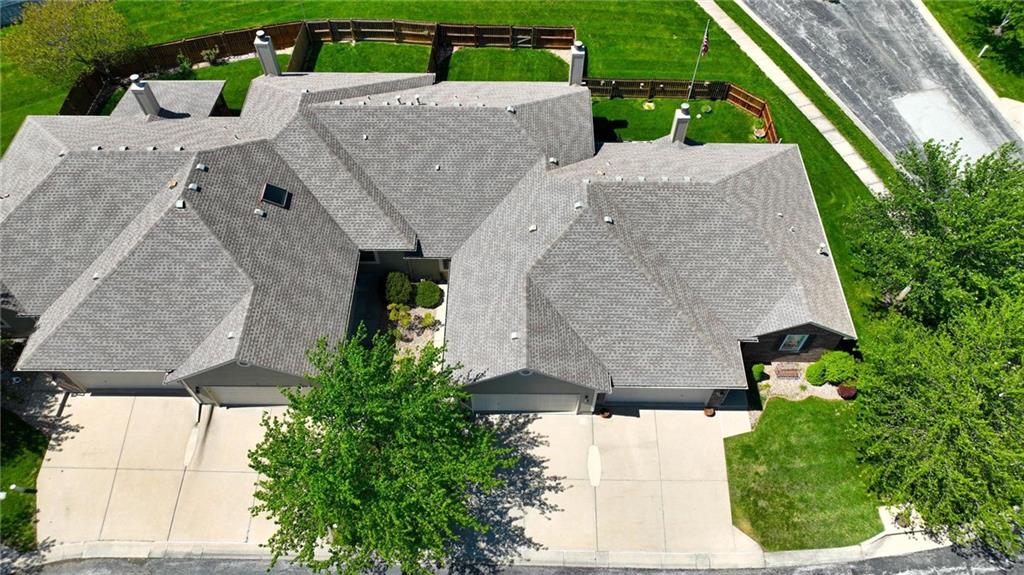 Experience effortless living in this beautifully remodeled ranch townhome featuring true main-level living, maintenance-provided convenience, and an ideal location. From the moment you enter, you’ll notice soaring vaulted ceilings, a bright airy feel, updated lighting with dimmer switches, stylish new flooring, and ceiling fans with remote controls for everyday comfort. Fresh neutral paint and thoughtful finishes make this home polished, welcoming, and move-in ready. The open-concept design creates an easy flow between the kitchen, dining, and living spaces—perfect for relaxing or entertaining. The kitchen offers quartz countertops, stainless/black appliances, and nearby main-level laundry for added convenience. The main floor includes two bedrooms and two full bathrooms, highlighted by a spacious primary suite with a quartz countertop, dual vanity, walk-in shower, and generous walk-in closet. The second main-level bathroom has also been tastefully updated, while all baths feature exquisite tile work and upscale finishes. The living room offers a striking yet comfortable atmosphere with a cozy fireplace and direct access to the private back patio and fenced yard. A convenient gate opens to additional green space beyond the fence. The finished lower level expands your living options with a large family room, a third full bathroom, and a non-conforming third bedroom—ideal for guests, office space, or hobbies. You’ll also love the oversized unfinished storage room with excellent potential for future finished square footage. Situated on a quiet cul-de-sac with a two-car garage, this home combines comfort and convenience in one exceptional package. Enjoy quick highway access with an easy commute to Kansas City International Airport, Downtown Kansas City, shopping, dining, and more—all within the desirable Staley High School attendance area.