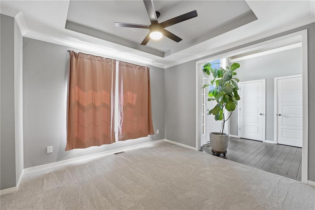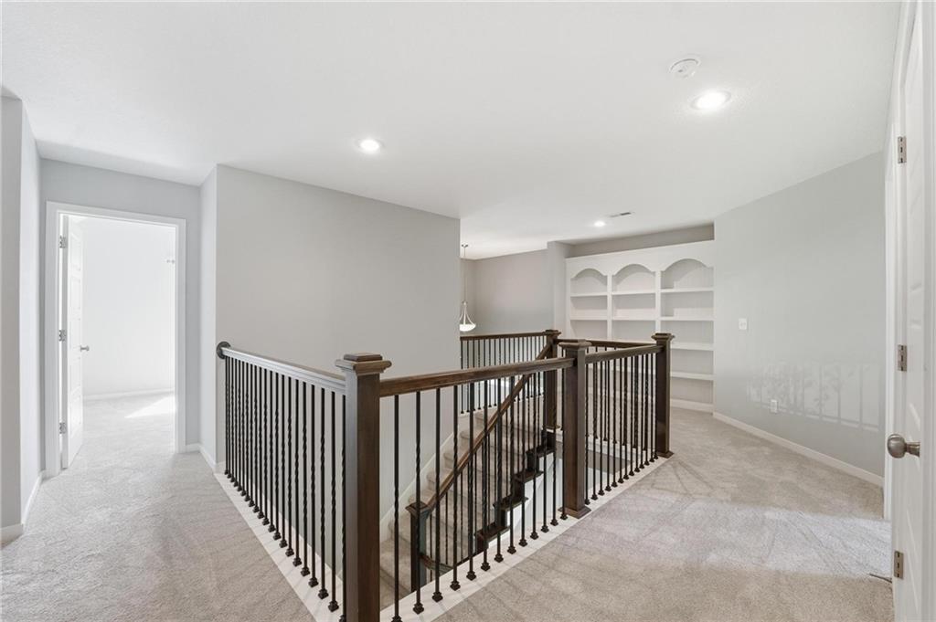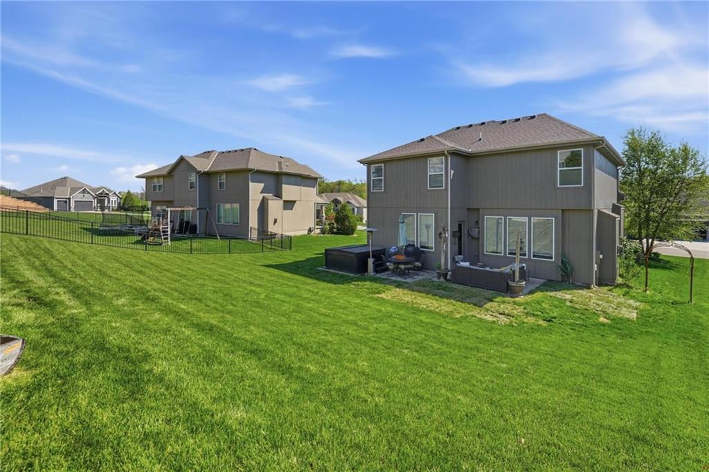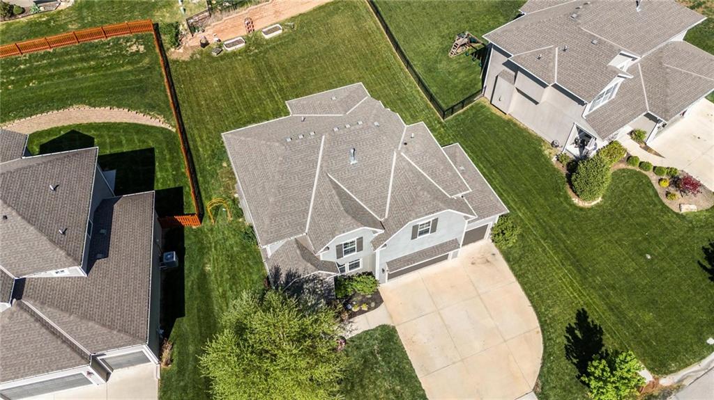This beautifully maintained 4-bedroom, 3.1-bath home offers the perfect blend of comfort, style, and everyday functionality in a highly desirable Olathe location. From the moment you arrive, the charming front porch sets a welcoming tone, leading into a bright and airy interior with soaring ceilings and an inviting entryway. The main living area is filled with natural light and features a cozy fireplace, creating an ideal space for both relaxing and entertaining. The open-concept layout flows seamlessly into the kitchen, where granite countertops, a large island, ample cabinetry, and a new microwave make both cooking and gathering effortless. Fresh new carpet enhances the home’s clean, updated feel, while thoughtful design elements throughout provide both style and practicality. Upstairs, the spacious primary suite offers a peaceful retreat with a tray ceiling and a well-appointed en-suite bath. Additional bedrooms provide flexibility for family, guests, or home office needs. A versatile loft area with built-in shelving adds even more functional living space. Step outside to enjoy the newly landscaped yard with freshly laid sod, offering plenty of room to relax or play. The outdoor living area is perfect for entertaining, complete with a patio and outdoor TV for enjoying evenings at home. The unfinished basement presents a fantastic opportunity to customize additional living space to suit your needs. Ideally situated near shopping, dining, and everyday conveniences while still offering a quiet, neighborhood feel, this home combines location, community, and livability in one exceptional package.