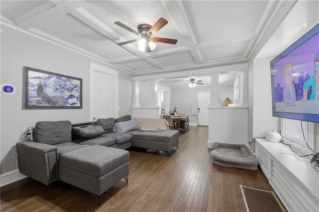 Charming 3 bed, 2 bath bungalow blending classic character with modern updates! Welcoming front porch and great curb appeal. Inside you’ll find a bright, open living and dining area with beautiful hardwood floors, coffered ceilings, and built-in features. Updated kitchen with granite countertops, white cabinetry, stainless steel appliances, and stylish tile flooring. Spacious bedrooms and refreshed bathrooms with clean, modern finishes. Enjoy comfortable living with plenty of natural light throughout. Convenient location near shopping, dining, and more!