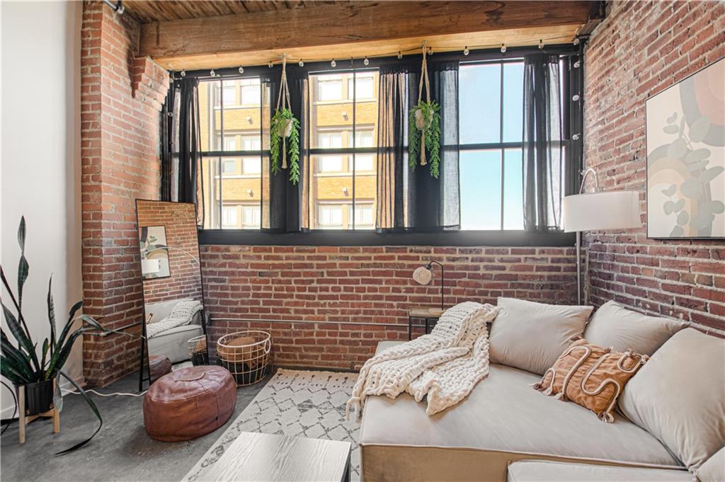 Come see this beautiful, fully furnished downtown condo! It doesn't get any easier! Located close to bars, restaurants and highways-only a few blocks to the free streetcar and just steps from the River Market area. A fantastic dog park is right up the street and e-bike rentals/Bike Share KC is right at your doorstep. This 1 bedroom, 1 bathroom condo is in a very quiet hallway; it's close to everything, but still located in a quiet area. It has been wonderfully updated and boasts beautiful polished concrete floors, granite counter tops, plenty of exposed brick and natural wood beams, lots of natural light, high ceilings, and being on the 5th floor, a fantastic view of the downtown airport, the Missouri River and beautiful sunsets. All stainless steel appliances stay, as well as the washer & dryer(LG). Included in the sale are the furniture and furnishings that is everything anyone could ever need to call this home! A wonderful sectional couch, bed, barstools, all shelves, shelving units, dresser, desk, 2 large screen TVs, even pots, pans, plates, glasses and silverware! (**Please note that the Kitchen Aid standing mixer does not stay**)Extra storage in the basement comes with the unit. Gated parking is available right next to the building; above ground $85/month & covered parking below is $110/month. Amenities include water, a wonderful fitness room, theater room, club house and sauna, building maintenance, trash pick up, snow removal, etc. A relatively low monthly HOA Fee for all of this is more than worth it! Whether you're a first-time home buyer, or a couple or single that just wants a place to enjoy downtown living, this place is perfect. Don't wait-schedule a tour today!