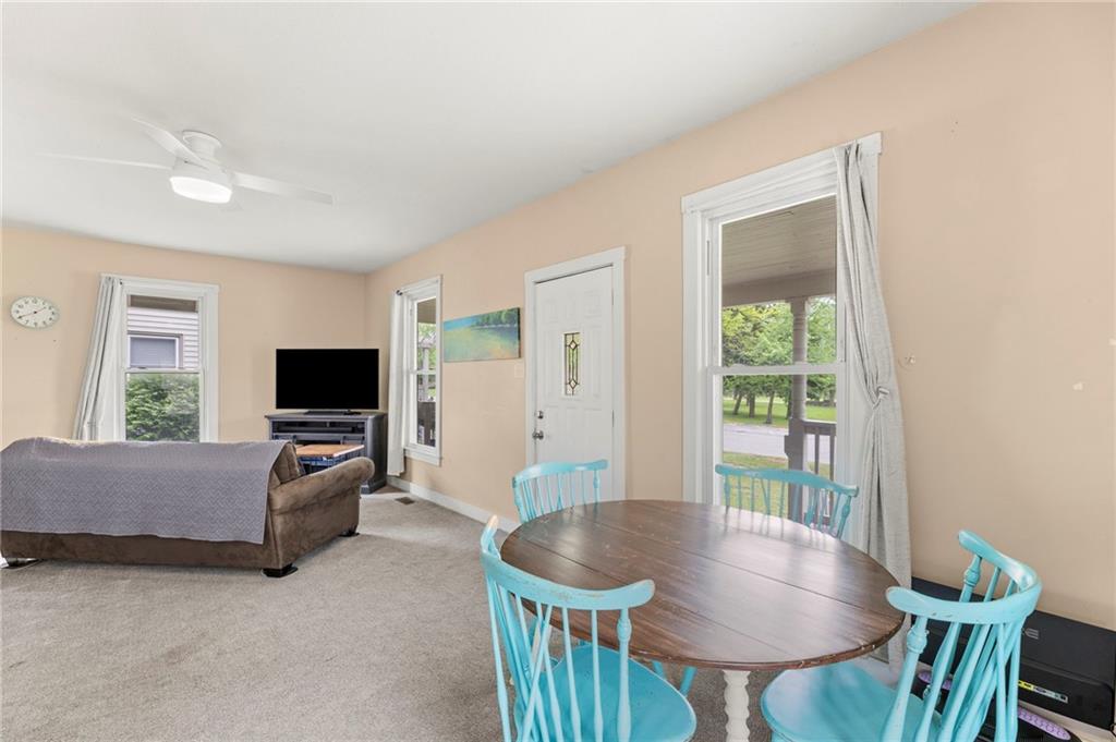 Nestled in a prime location just a short stroll from the charm of the historic Paola square, this adorable two-bedroom, two-bathroom home offers a perfect blend of modern convenience and classic appeal. The main level welcomes you with an expansive family room that flows effortlessly into an open concept kitchen and dining area with loads of cabinets and all appliances staying, creating an ideal layout for both daily living and effortless entertaining. Main level bathroom features a huge, tiled shower. Upstairs, you will find two generously sized bedrooms and a second full bathroom, providing a private and comfortable retreat. Car enthusiasts or those seeking extra storage will appreciate the wonderful, newer two-car attached garage that adds significant value to the property. The home's exterior has been meticulously maintained, featuring a comprehensive refresh in 2020 that included scraping and repainting the siding along with the installation of new gutters, newer windows 2022 and central heat and air. Beyond the walls, a lovely yard awaits, offering the perfect backdrop for summer barbecues and outdoor relaxation. This move-in-ready gem combines a fantastic layout with a sought-after neighborhood setting; don't miss your chance to own a piece of Paola history, as a home this well-cared-for truly won't last long on the market.