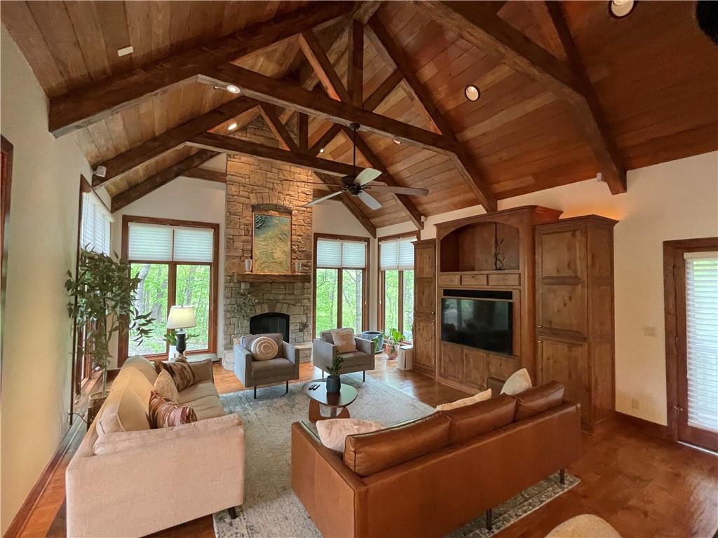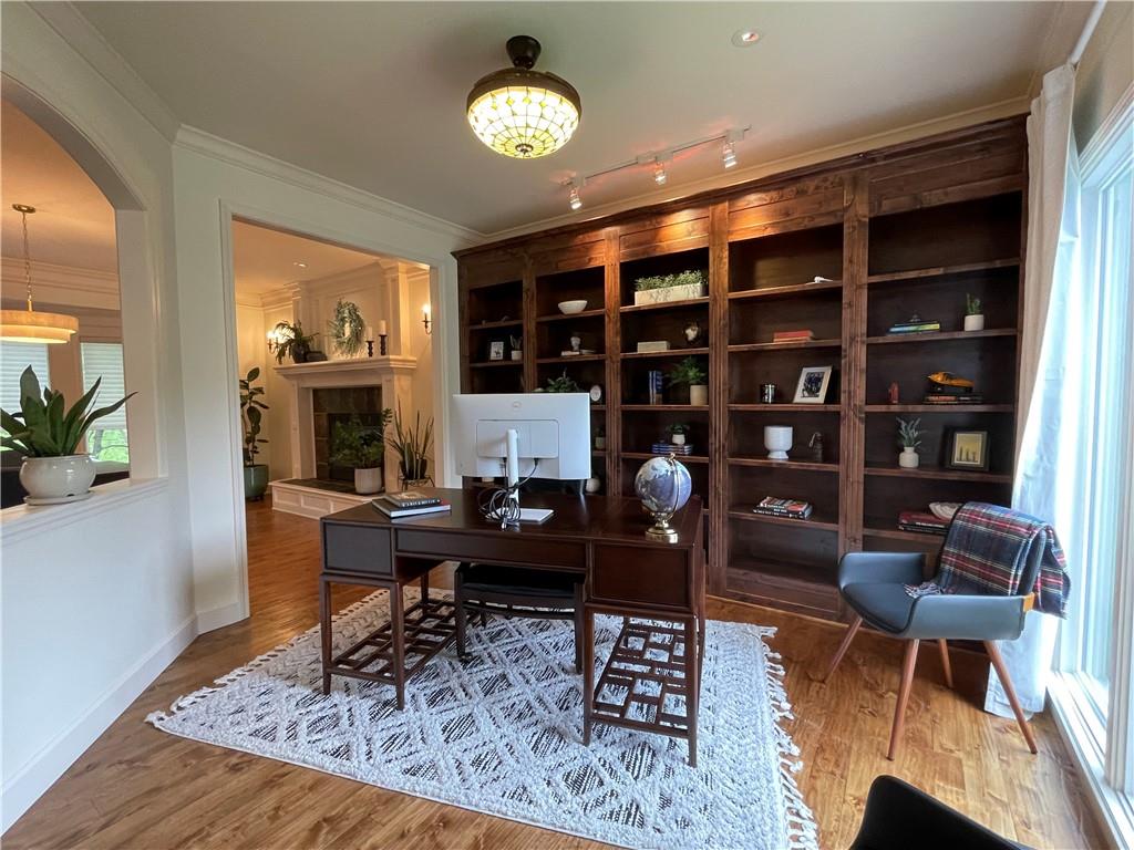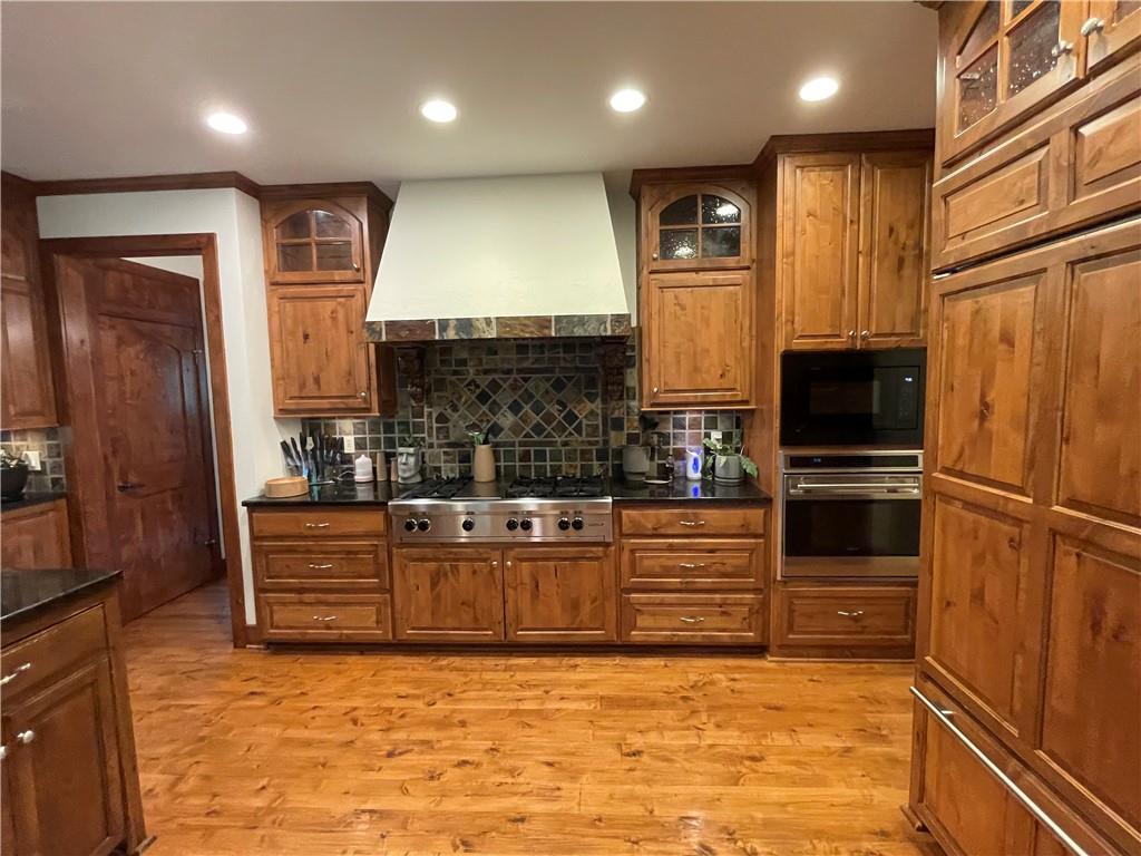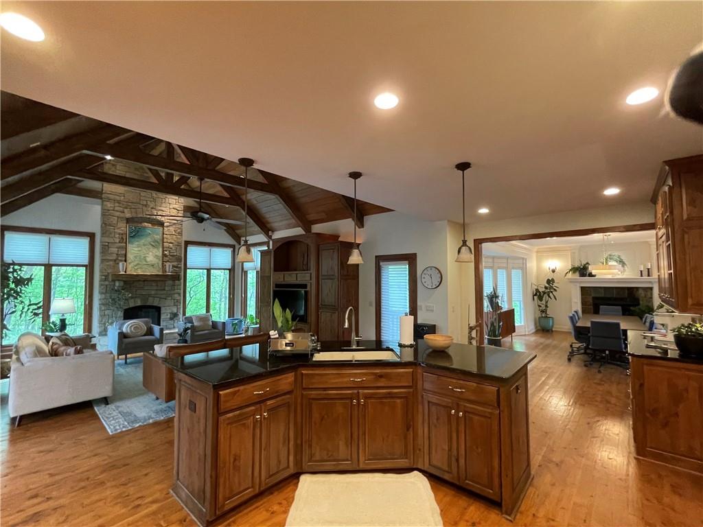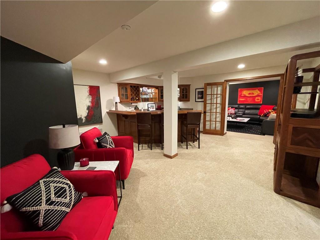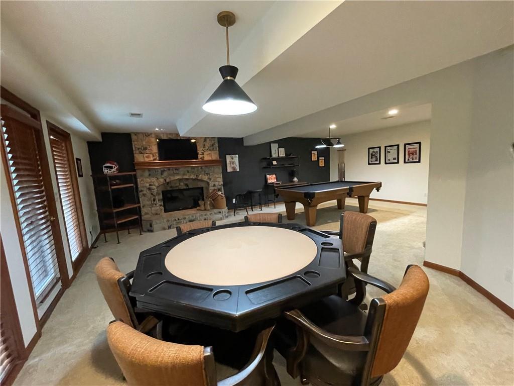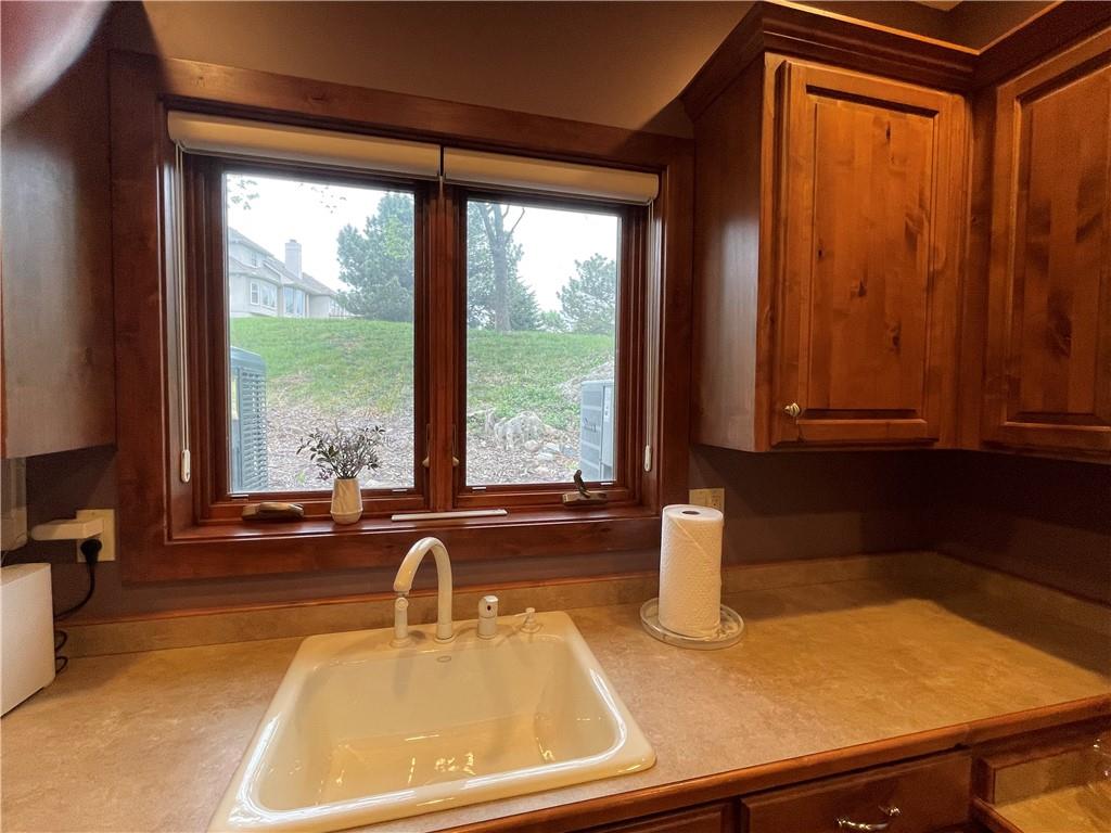 Discover the Allure of Elevated Living in this Impressive Updated Colorado-Style Home Nestled in the heart of Kansas City North, the two-story residence in Maple Park Estates radiates charm and sophistication, effortlessly blending the serene beauty of nature-immersed living with modern convenience. If you seek a haven perfect for both entertaining and unwinding from the daily grind, this home is a sanctuary designed to elevate your lifestyle. As you step inside, you are greeted by exquisite hand-textured hardwood floors that complement the expansive and unique open floor plan. A floor-to-ceiling glass wall at the rear of the home invites the stunning beauty of nature into your living space, creating an ambiance that feels as though you are nestled within a tranquil mountain range. The chef-inspired custom kitchen is a culinary oasis, featuring luxe appliances and extensive custom cabinetry, seamlessly integrated to match the refrigerator, ensuring a cohesive and polished look. Adjacent to the kitchen, you'll find a large dining area that leads to library/office with tailored bookcases specifically designed for the remarkable space. Unwind in the great room with a striking stone fireplace that sets the stage for the lodge feel. This space is perfect for relaxation or hosting cherished moments with family & friends.Venturing downstairs, the finished basement provides additional living & entertaining areas, providing ample space for gatherings or cozy nights in. The thoughtful layout includes an abundance of storage, a stylish wet bar, and a versatile bonus room that can serve as a personal gym or an extra sleeping area. Throughout this magnificent home, there are numerous upgrades that enhance its allure, including a new HVAC system, updated windows, fresh carpet, and a fresh coat of paint. Every detail has been meticulously considered, making this residence truly move-in ready.Experience luxury living at its finest in this stunning Colorado-style home.