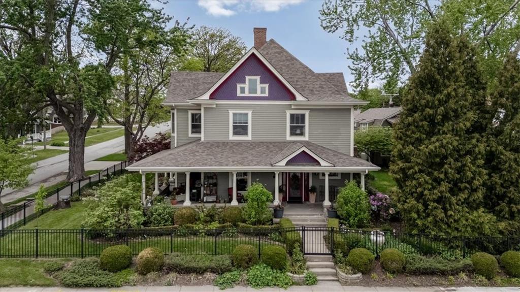 Hands down, the most unique and carefully restored historic home in the heart of Blue Springs. Nothing rivals this home as no expense was spared in completely restoring this 1908 beauty, and then taking it well beyond even the original build with a large addition including 2 car garage and additional living space above, plus a complete makeover of the detached carriage house which includes a third garage space, storage, a finished lower level studio with full bathroom and a studio apartment on the upper floor with its own driveway, access, kitchen, full bathroom, and laundry. This is better than new construction with high-end finishes throughout, and still the advantage of new everything - from completely new underground utilities for water, electric, gas, and sewer, to energy efficient spray foam insulation in all exterior walls, to the expensive, period-appropriate new double pane thermal wood windows. You'll be charmed by the spacious open level, thanks to engineered beams and posts that allow for a super open layout with the chef's kitchen as the centerpiece. Many of the 100+ year old materials were repurposed on the main level including douglas fir shiplap that is now the eat-in kitchen ceiling, or the original barn wood that is now a bartop between the two decorative shelves that frame the kitchen. There's even original stained glass in the grand staircase! Outside is a gardener's paradise with a sprinkler system that covers every square inch and a meticulously manicured yard, maintained by a master gardener. It's the entertainer's dream with the dedicated hot tub area, beautiful built-in brick fireplace, plus the state-of-the-art swim spa that stays with the home. The primary suite is a dream with vaulted ceilings and a giant bathroom with dual vanities and a cavernous walk-in double shower. Walk-in closets galore and tons of storage. Documentation for virtually everything. This is truly a once-in-a-lifetime opportunity. Preapproval required for showing!