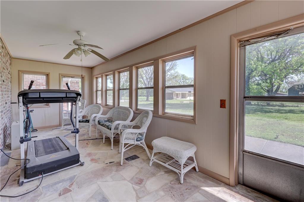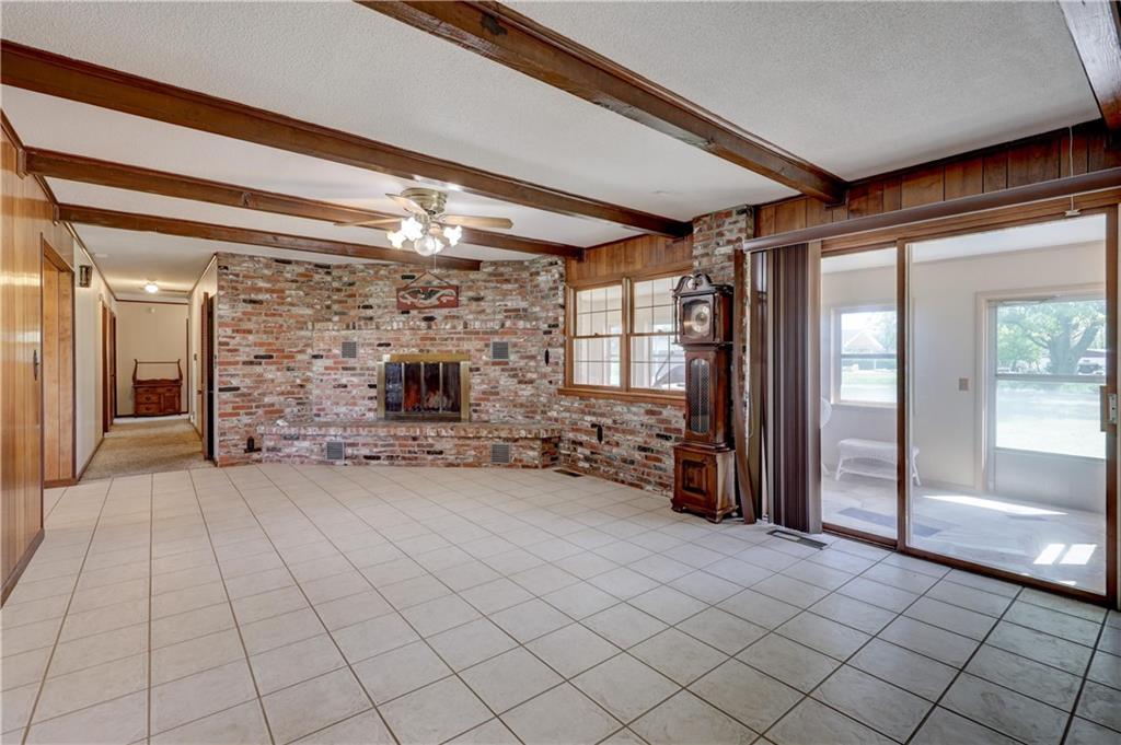 Beautiful one-owner brick home situated on a spacious 1+ acre corner lot next to the grade school! This well-maintained property offers 3 bedrooms, 3 full bathrooms, and a dedicated office or flex space. Inside, you'll find spacious rooms, tile floors, and a cozy fireplace that adds warmth and charm to the functional layout. The home also features central heat and air, an attached garage, and a convenient circular driveway for easy access and extra parking. All appliances convey, making this a truly move-in-ready opportunity. Enjoy year-round relaxation in the sunroom and step outside to the patio--perfect for entertaining or enjoying the your surroundings. With the space and privacy of a large lot while still being close to in-town amenities, this property offers comfort, convenience, and long-term pride of ownership.