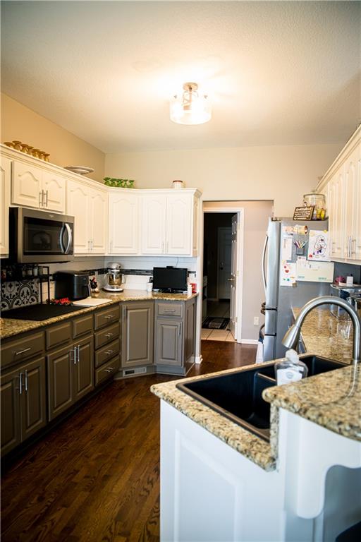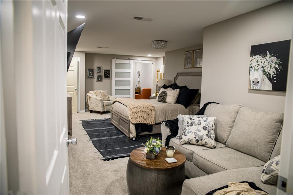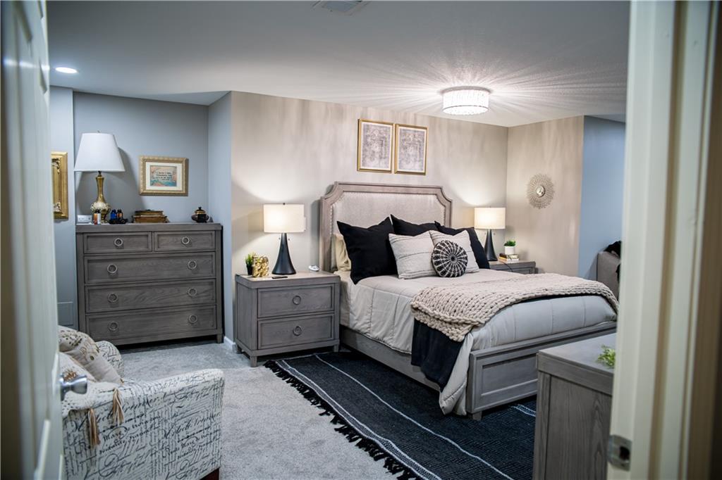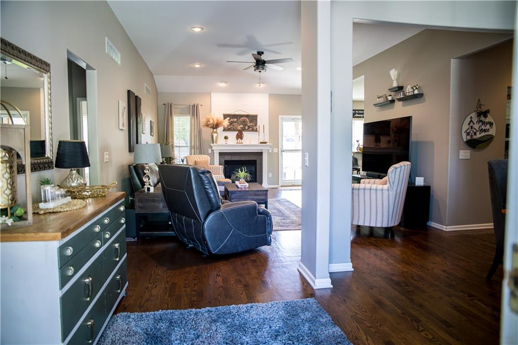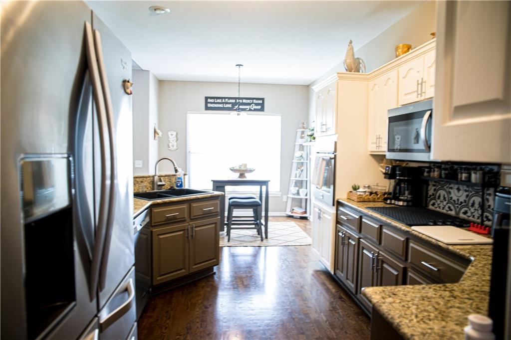 This home has been tastefully decorated and meticulously maintained. It's so stunning it could be on HGTV. Hardwood floors throughout the main level, with a tiled laundry room. Rooms are spacious, especially the master ensuite. In fact, there are two master ensuites: one on the main level and the other in the lower level. The lower level master bath has heated floors and the LL walk-in closet includes the 2nd laundry hook-up. There is a family room with a game area and bar in the LL, as well. Updates to the home include a new water heater, all flooring, light fixtures and ceiling fans, furnace, water softener, roof and cooktop. The backyard is enticing with a covered patio and a separate cement pad for additional entertaining. The newer Basehor Elementary School is within walking distance, and the HOA provides a swimming pool, shelter, and basketball court. Don't miss this stunning home!