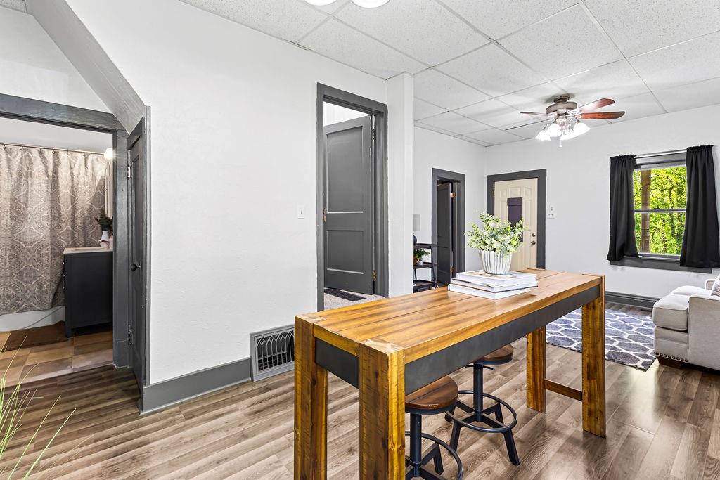 Charming centrally located 2-bedroom, 1-bath historic home on a corner lot blending timeless character with thoughtful modern updates. Inside, you’ll find low-maintenance plank flooring and fresh, paint throughout, creating a bright and inviting space ready for your personal touch. The home retains its classic appeal while offering the comfort and convenience today’s buyers appreciate. Step outside to enjoy the adorable new front porch—perfect for morning coffee or relaxing evenings. Ideally situated overlooking the Parkway, this home provides easy access to everything you need while also being just moments from scenic walking trails, the dog park, and a peaceful pond. A perfect combination of charm, location, and easy living—don’t miss this one!