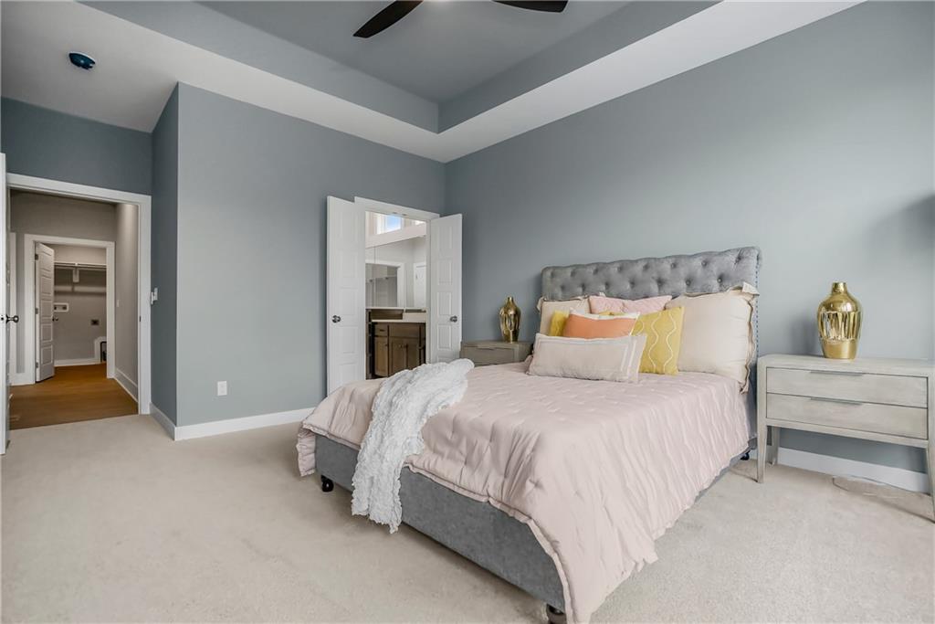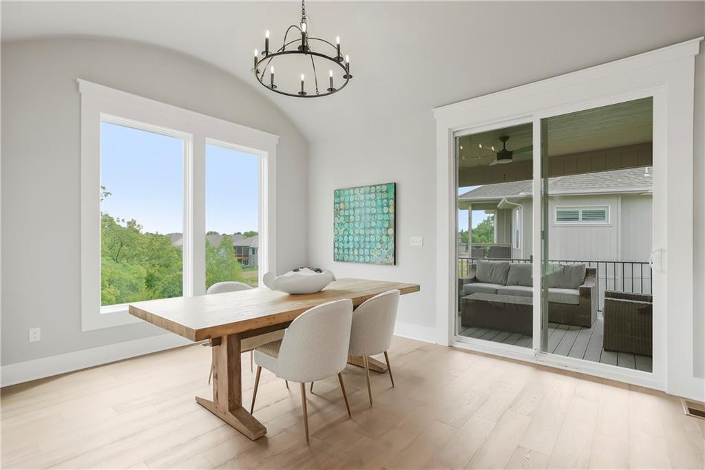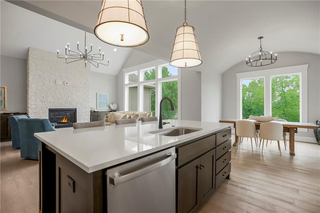 The Sonoma Reverse plan is an open-concept masterpiece designed for effortless entertaining and comfortable, everyday elegance. •Soaring Ceilings: The heart of the home is the Great Room, featuring a dramatic cathedral vault ceiling accented with stylish beams, creating an expansive and light-filled atmosphere. •Gourmet Kitchen: Prepare to be inspired in the kitchen and dining area, highlighted by a signature barrel vault ceiling and stunning hardwood floors. This space flows seamlessly for easy hosting. • Main-Floor Retreat: The private Master Suite offers a true sanctuary. Indulge in the luxurious master bath complete with a huge, walk-in shower and an exceptionally large master closet that provides incredible storage. • Entertainment Hub: The finished walkout lower level expands your living space dramatically. It features a spacious Rec Room, a stylish wet bar for perfect game nights, two large bedrooms, and a full bath—ideal for guests, teenagers, or a dedicated home gym. • Outdoor Living: Enjoy serene mornings and beautiful sunrise on your covered Ever-grain composite deck, offering a low-maintenance, high-style outdoor retreat. This home provides plenty of flexible living space and excellent storage throughout. It truly embodies modern design and is the perfect foundation for the life you've always envisioned. MOVE IN READY - PHOTOS ARE OF ACTUAL HOME. Forest View-a Premiere Rodrock Community featuring Moms Council Events, Water Park, Zero Entry Pool, 50 ft Waterfall Entrance, Sand Volleyball, Playground & Picnic areas. Sport Court includes Basketball & Pickle Ball. Access to Cedar Niles Park/Walking Trails is located within the Community and Lake Olathe Park Nearby.
