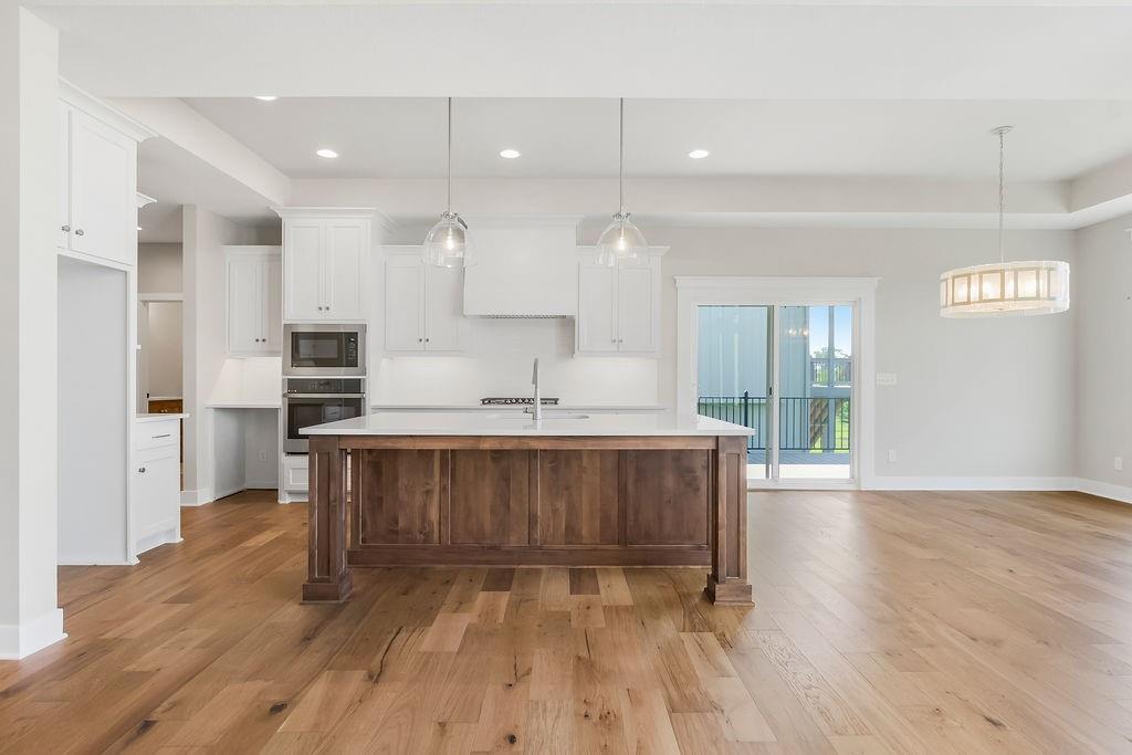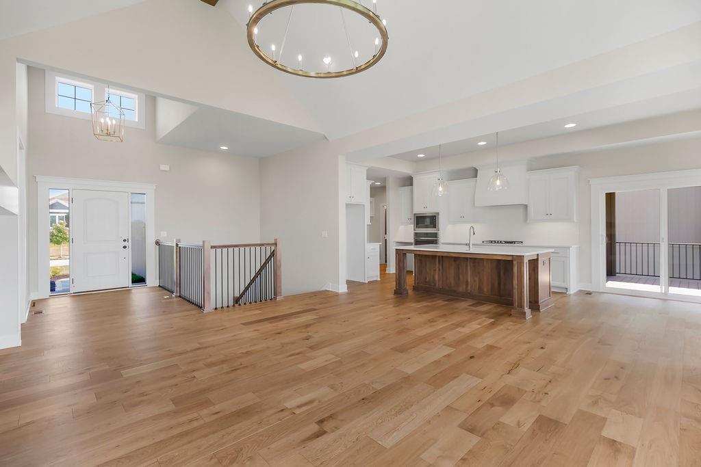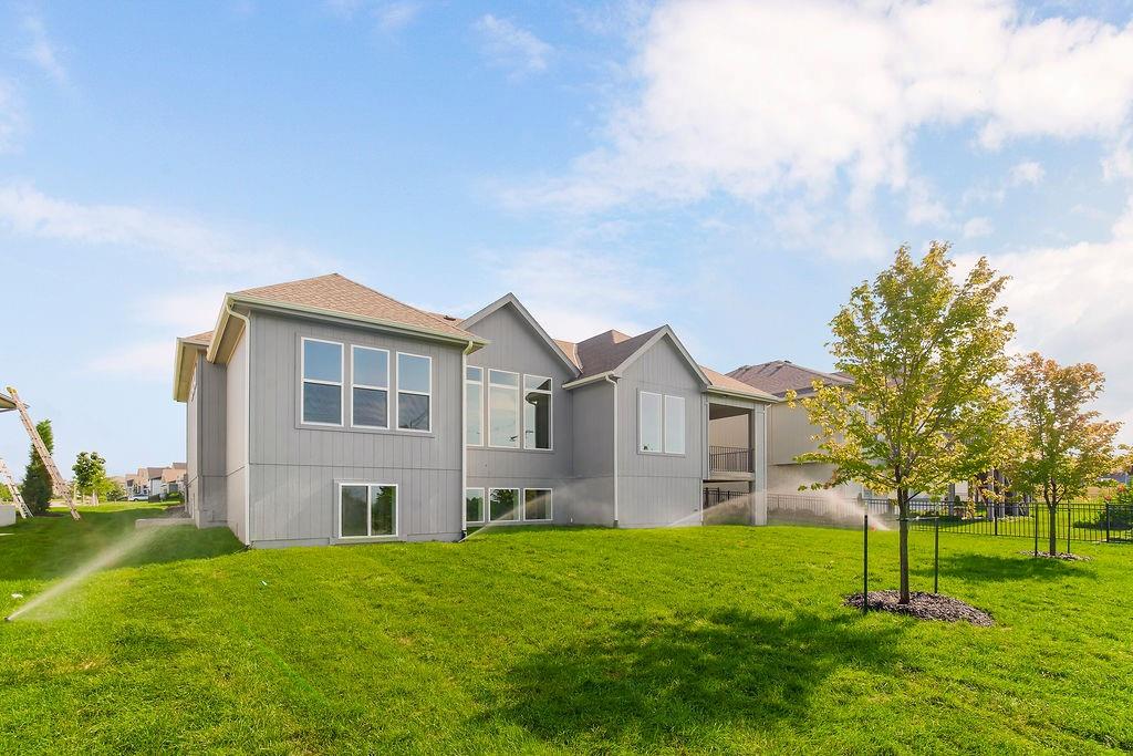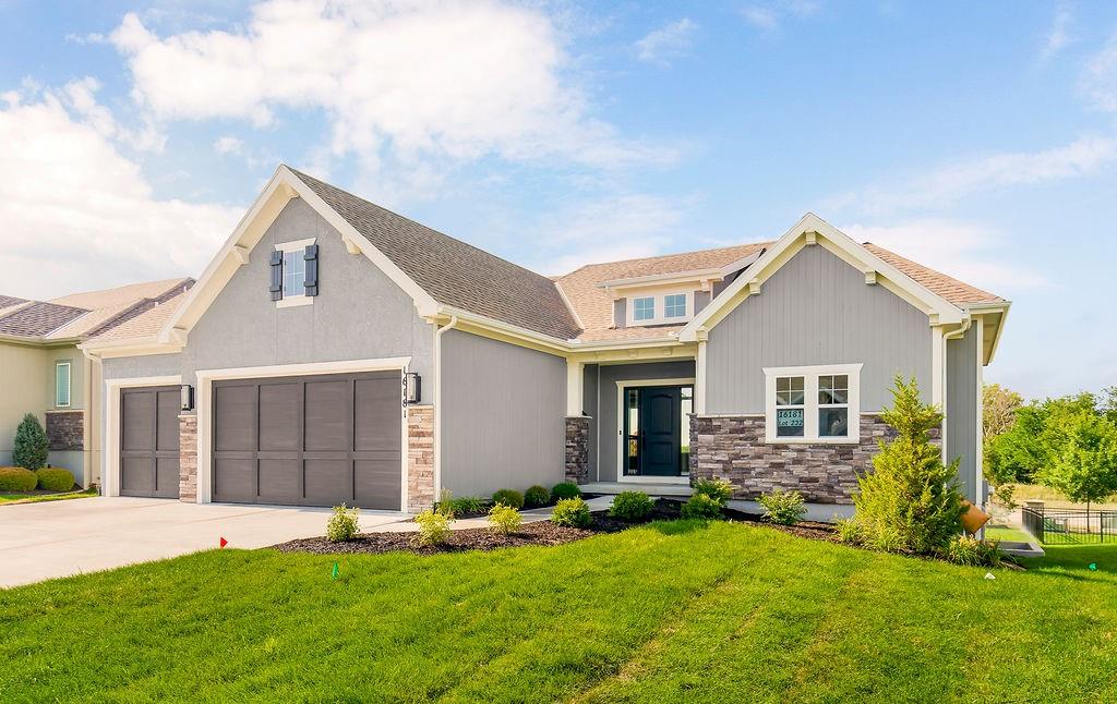 Move-in ready, the Sonoma by Rodrock Homes is a reverse-style floor plan featuring a main-level primary suite and an open Great Room with a vaulted ceiling and a wall of windows across the back, filling the space with natural sunlight. The chef’s kitchen offers a large island, walk-in pantry, and convenient drop zone off the garage. A guest bedroom with a private bath is located just behind the kitchen. The primary suite features a vaulted ceiling, spa-like bathroom with dual vanities, walk-in shower, and a huge closet with direct access to the laundry room. Enjoy outdoor living with a covered deck off the dining area, perfect for entertaining or relaxing. Residents of Stonebridge Trails have access to four zero-entry pools, two clubhouses with fitness facilities, sport courts, playgrounds, and walking trails. The home is approximately 0.3 mi from Heritage Park, a 1,234-acre recreational hub with a lake, dog park, athletic fields, disc golf course, softball, football, and soccer fields, plus an 18-hole golf course with driving range. Nearby schools include Prairie Creek Elementary (~0.6 mi), Woodland Spring Middle (~1.0 mi), and Spring Hill High (~5.5 mi). Daily conveniences are close by, including Natural Grocers (~4.2 mi), Price Chopper (~4.5 mi), and local coffee spots (~1–1.2 mi). Taxes, square footage, and room dimensions are estimated – Buyer or Buyer Agent to verify.