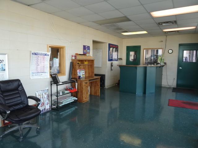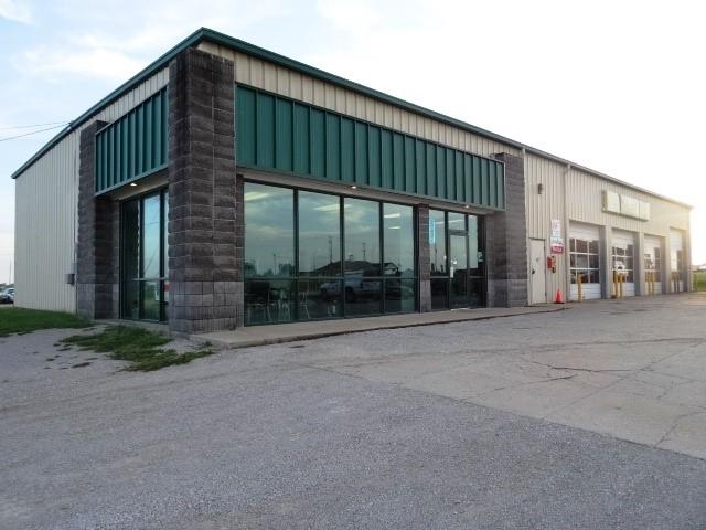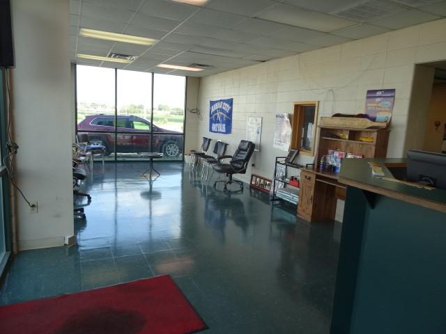 Full Operating Auto Repair Shop 1/2 City Block. Butler Bld all steel/Conklin Co white reflected roof. (6) 12' roll up doors, (2) 14' roll up doors, 3 phase power, 10x19 office space, 15x34 Show Room, (6) Lifts, (2) 12,000 lb. lifts, (2) 14,000 lb. lifts. Open front Alignment Machine & Rack. 1000 Gallon Buried Containment Tank drain in floor--separates oil & antifreeze. 24x40 Storage Rm. 50x105 Shop, 175 lbs. of constant air pressure from 2 tanks. Oil Changes, Breaks, Shocks, Struts, Tune-ups, Air Conditioning, Alignment. Winter Gas Furnace, Electric Air, Close to I 49. Located with easy access to highway. Full service/tire repair & purchase. Mechanic on duty, South & North Doors for great summer ventilation. Concrete parking, Storage loft, 2 bathrooms. 26' Inside clearance. Customer Service & Courtesy is #1
