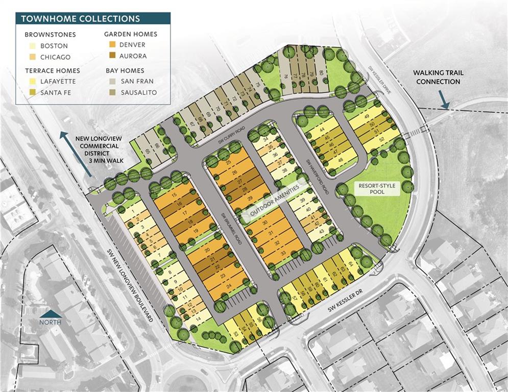 The Chicago plan is your opportunity to live comfortably and efficiently in the sought-after Village at New Longview—Lee’s Summit’s premier low-maintenance townhome community. This thoughtfully designed 2-bedroom + home office layout is ideal for professionals, downsizers, and anyone looking to simplify without sacrificing style. Key features include: Two spacious upstairs bedrooms and two full baths, including a luxe primary suite with dual vanities and dual showerheads, A dedicated home office on the lower level—perfect for remote work or hobbies, Open-concept living with a quartz kitchen, soft-close cabinetry, and a powder room for guests, Private balcony off the kitchen, ideal for grilling or morning coffee Oversized garage with extra room for bikes, gear, or storage. The $240/month HOA covers a wide range of services—roof, exterior paint, lawn care, snow removal, trash/recycling, building insurance, and access to a future community pool—so you can focus on living, not maintenance. Move-in ready and designed for modern life, the Chicago is where smart living meets everyday comfort.