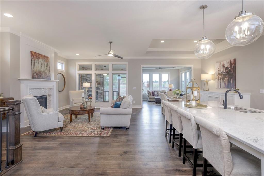 This is a Model Home. Amarone is wide open at the front door. Look thru beautiful sunroom and living area. You won't be disappointed in the standard selections and the options that are available. Main level living with 2 bedrooms, Sun Room, dining and living room. 10 foot ceilings and loads of windows bring the outside in. Enjoy the lower level finished with 3rd bedroom (possible 4th) Media room and Full bath adjoining the bedroom. Main floor living with the lower level for those holiday experiences or game day parties. Come and enjoy the Lifestyle living that offers the ease of services provided for mowing and snow removal, POOL and clubhouse, individual sprinkler systems and Trash pick up. A community built with you in mind weather you travel or enjoy the company of your neighbors in their frequent opportunities for socializing. Welcome Home to Solera!