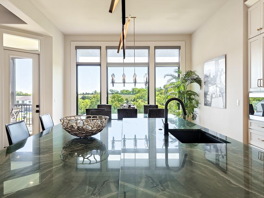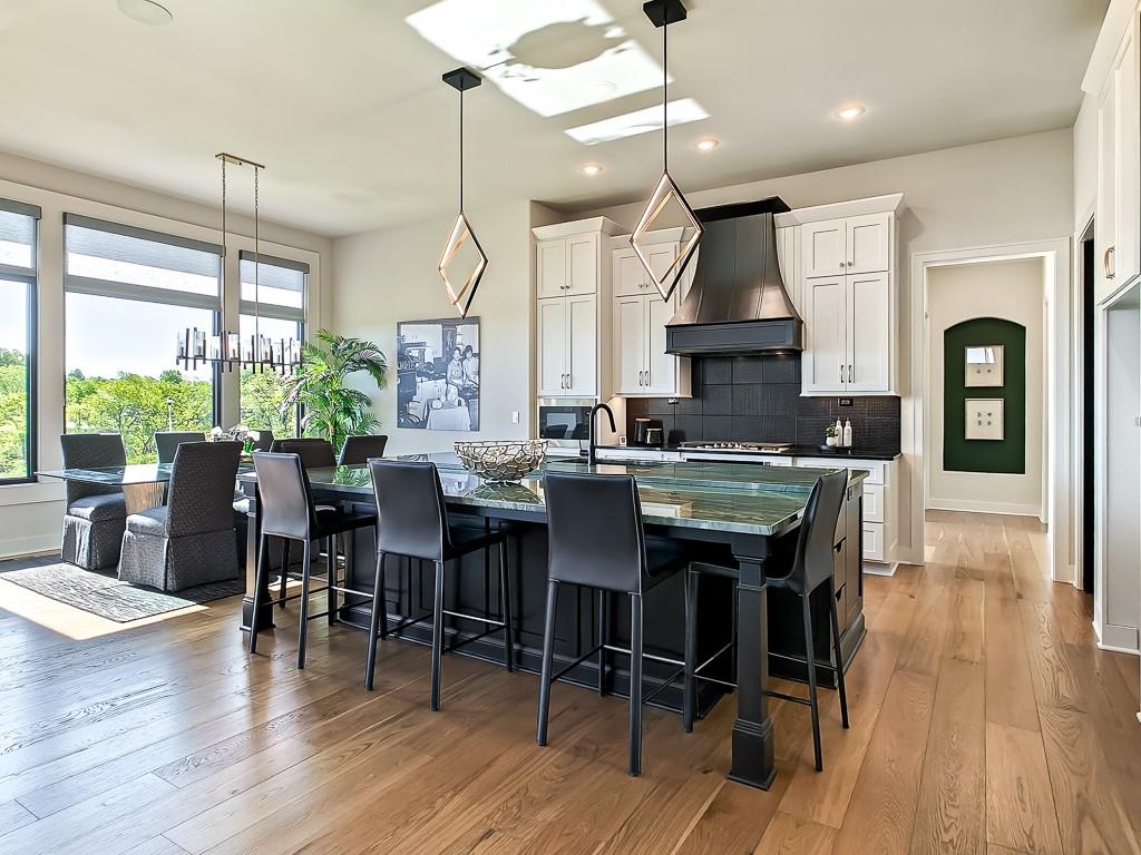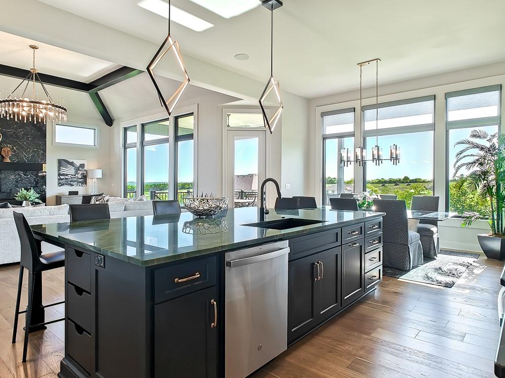 MODEL HOME: NOT FOR SALE. Welcome to the Courtland Reverse, crafted by the esteemed Don Julian Builders. Nestled in Bristol Highlands Estates in Shawnee on lot 11, this stunning reverse 1.5 story home boasts 4 bedrooms + office, 4 full bathrooms, and 2 half bathrooms across 4,270 sq ft of meticulously designed living space. This home offers unparalleled entertaining space and tranquility. The main level boasts a grand primary suite featuring a vaulted bedroom, a primary bath complete with soaking tub, double vanity, and an expansive walk-in closet seamlessly connected to a convenient laundry room. Entertain with ease in the designer kitchen, equipped with a 5-burner gas cooktop, large island, walk-in pantry, and open layout. The great room features vaulted ceilings, gas fireplace, and access to the covered deck, where you can unwind while enjoying picturesque views from the rolling hills of Shawnee. The main level also offers a versatile study/flex room, another main level bedroom, an inviting outdoor courtyard, and a built-in pub, perfect for hosting gatherings or relaxing evenings at home. Descend to the lower level to discover two additional bedrooms with their own bathrooms and a spacious recreation room with access to the covered patio. Entertain effortlessly at the wet bar with a large island, accompanied by a convenient half bath for guests. Beyond the luxurious amenities of this home, Bristol Highlands Estates offers a lifestyle of convenience and recreation. Enjoy proximity to premier golf courses, Lenexa City Center, parks, walking and biking trails, as well as an array of shopping and dining options. Future plans for the community include a clubhouse, pool, sport courts, and playground, promising endless opportunities for leisure and fun. Experience the epitome of luxury living in the heart of Shawnee.