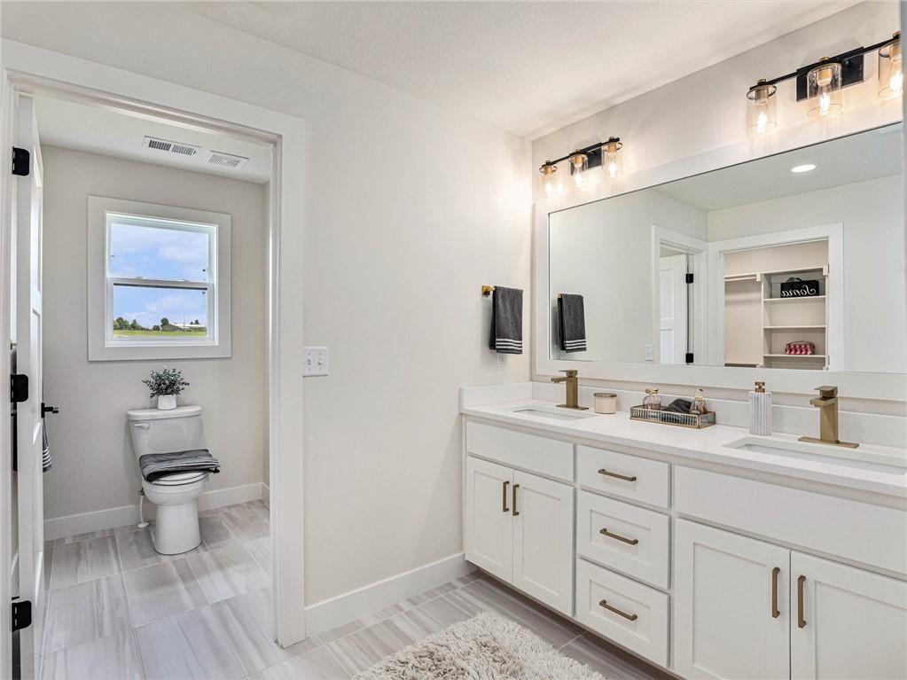 ***2-STORY MODEL HOME NOW FOR SALE*** The MADISON! Modern Farmhouse Design! Upgraded Features Include: 3-CAR GARAGE with EPOXY Floor FINISH ($8,600 Value!) Large Open Kitchen with ISLAND, QUARTZ Countertops, Soft Close Cabinets and Drawers! Large WALK-IN PANTRY, Built-In Spice Rack, Stainless Steel Appliance Package and Composite Sink! BREAKFAST Nook Opens to Covered and Extended PATIO! Beautiful HARDWOOD Floors Throughout First Floor and Second Story Hallway! Large GREAT Room with Stunning STONE Direct Vent Fireplace! OPEN RAIL to 2nd Story with Large PRIMARY Suite with Spacious Walk-In Closet, Hardwood Floors, X-Large Custom Tile Shower, Pivot Shower Door, Barn Door and QUARTZ Vanity Top! Large LAUNDRY Room with Tile Flooring and BUILT-IN Cabinet! Hall Bathroom offers Double Sink, Custom Tile Tub/Shower and Large Built-In LINEN Cabinet! FINISHED Basement with X-Large Rec-Room with Luxury Vinyl Plank Flooring, WET BAR with Quartz Top, Floating Shelves and 3rd Bathroom with Tile Shower ($45,000 Value)! Upgraded Lighting Package Throughout! SPRINKLER System and Upgraded LANDSCAPING Package ($12,500 Value)! Upgraded Black Window Package! High Efficiency HVAC with Humidifier! Square footage and room sizes are APPROXIMATE from Builder or Blueprint. Owner/Agent. Minutes From The Legends! Award Winning Blue Ribbon BASEHOR LINWOOD Schools!