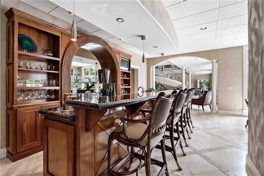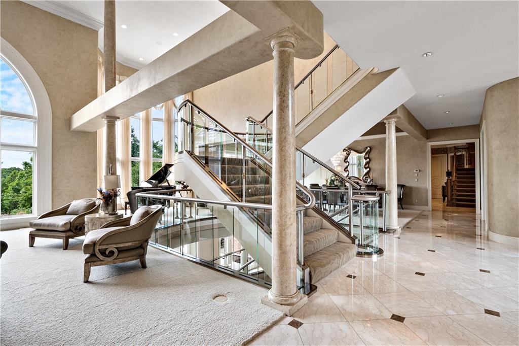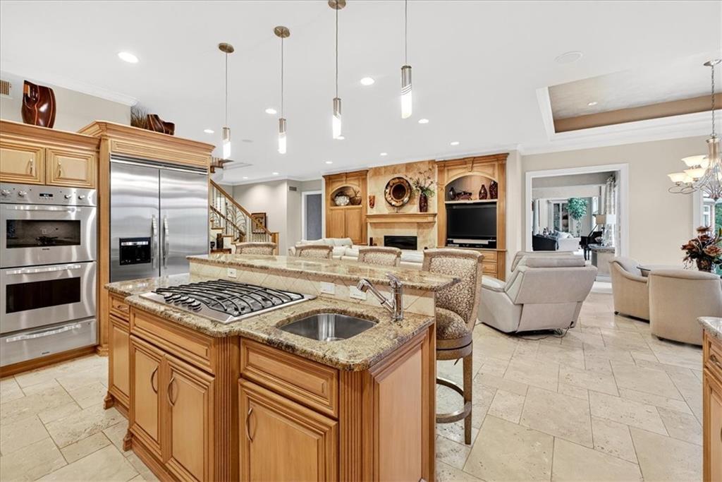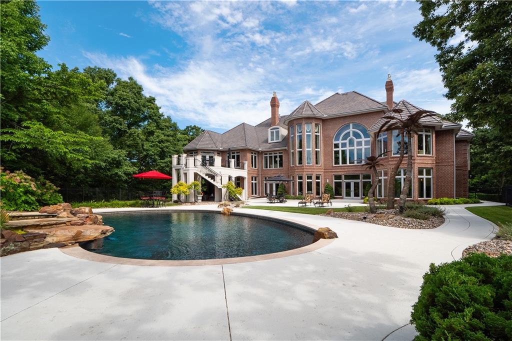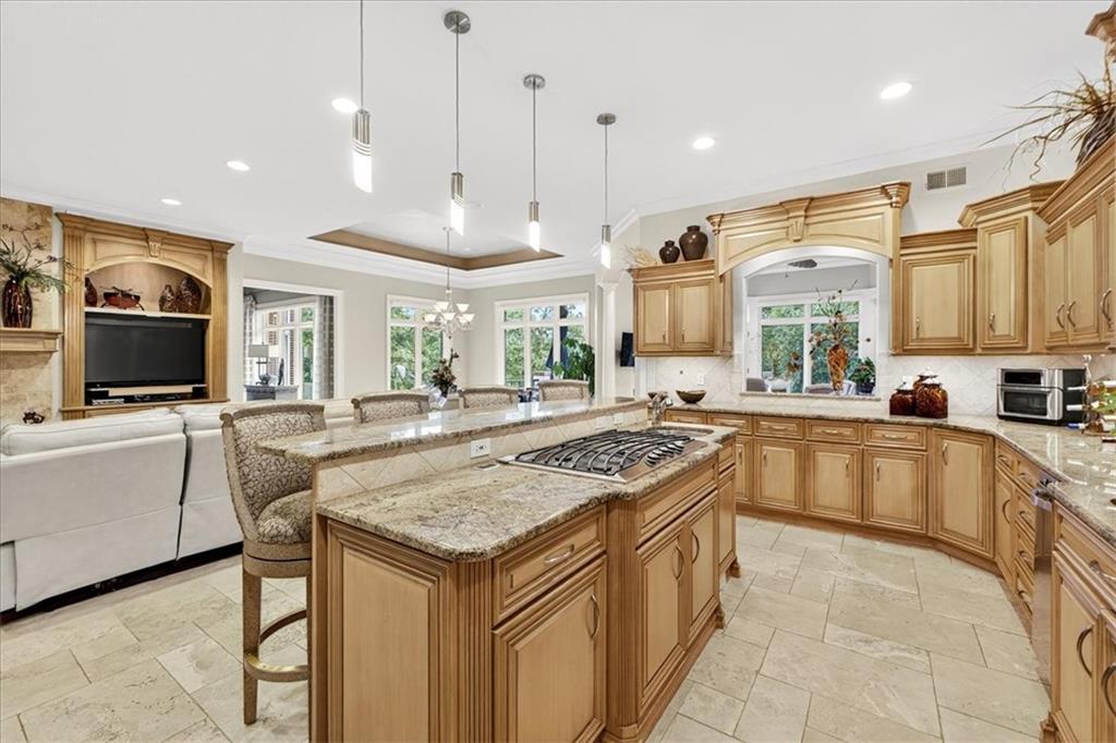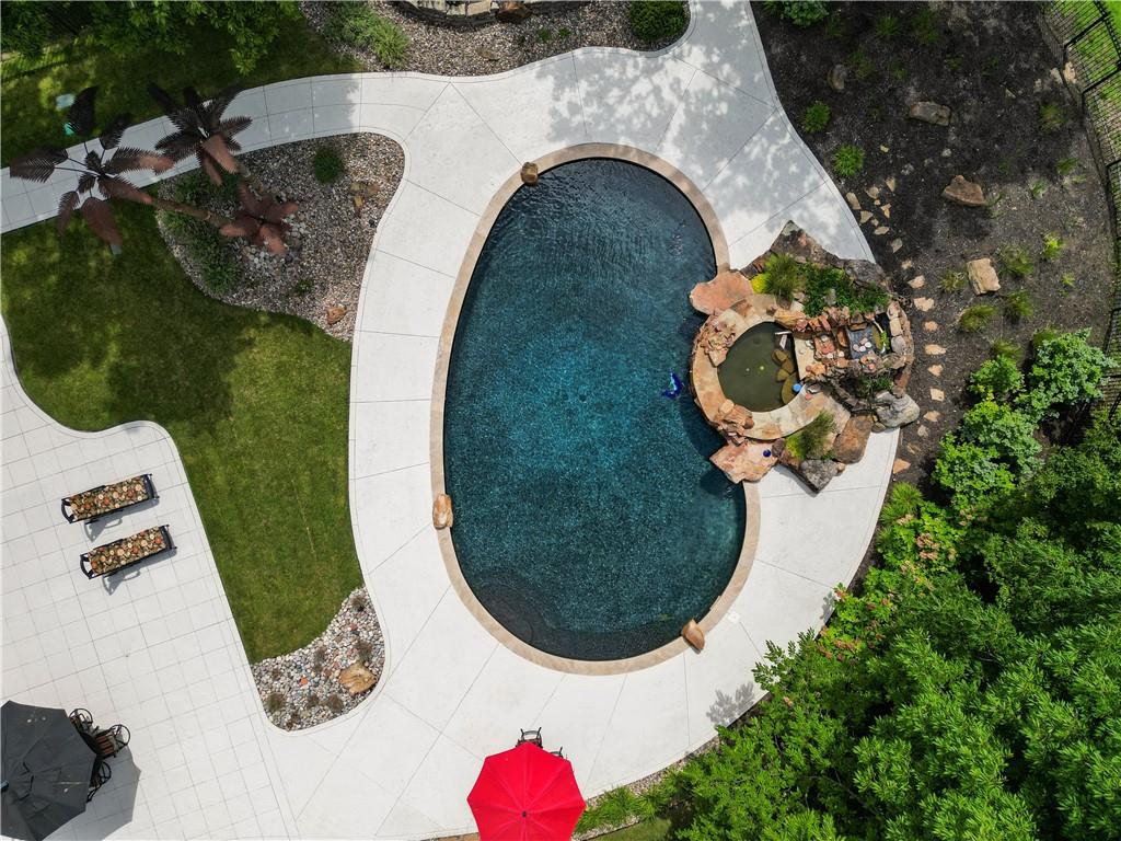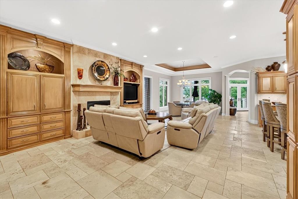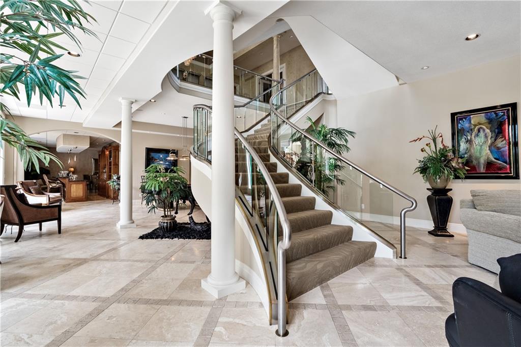 Situated on a private point in the West Shore of Riss Lake, this elegant lakefront residence spans 11,700 sq. ft. on 1.22 acres of beautifully maintained wooded landscape. Nestled within a private gated community, you'll be immediately impressed by the stunning exterior, impeccable circular drive, and custom glass entry. Inside, this meticulously designed home impresses at every turn. From the incredible custom stainless steel and glass staircase to the expansive entertainment area, this home is truly one-of-a-kind. Flooded with natural light, it boasts soaring ceilings and walls of windows. On the main level, you'll find a formal living and dining room, a large office, a separate den, a cozy hearth room, a designer kitchen with Viking and Sub Zero appliances, and a beautiful sunroom with incredible views. The Owner's suite is a retreat filled with special details such as custom ceiling features, a lovely sitting room, expansive closets, a whirlpool tub, and more. The upstairs features a large loft area and three spacious bedrooms, each with private baths and walk-in closets. This home also includes a large gym, a playroom, and a fabulous home theater. For hosting, there’s a full bar and a second kitchen, making entertaining guests an effortless yet elevated experience. Step outside to your own resort-like oasis, featuring a beautiful lagoon-style pool, an outdoor kitchen, and an expansive deck area to entertain or relax and enjoy the lake views. Just off the pool area is an indoor spa room with an attached bathroom and steam shower. The property includes a five-car garage ideal for car enthusiasts, plus a dedicated shop area. Don't miss this rare opportunity to own this masterpiece of craftsmanship located just minutes from MCI Airport, Charles B. Wheeler Airport, downtown KC, and the Plaza. Privacy, luxury, and location at their finest! Taxes and square footage are estimated and should be verified by Buyer's agent.