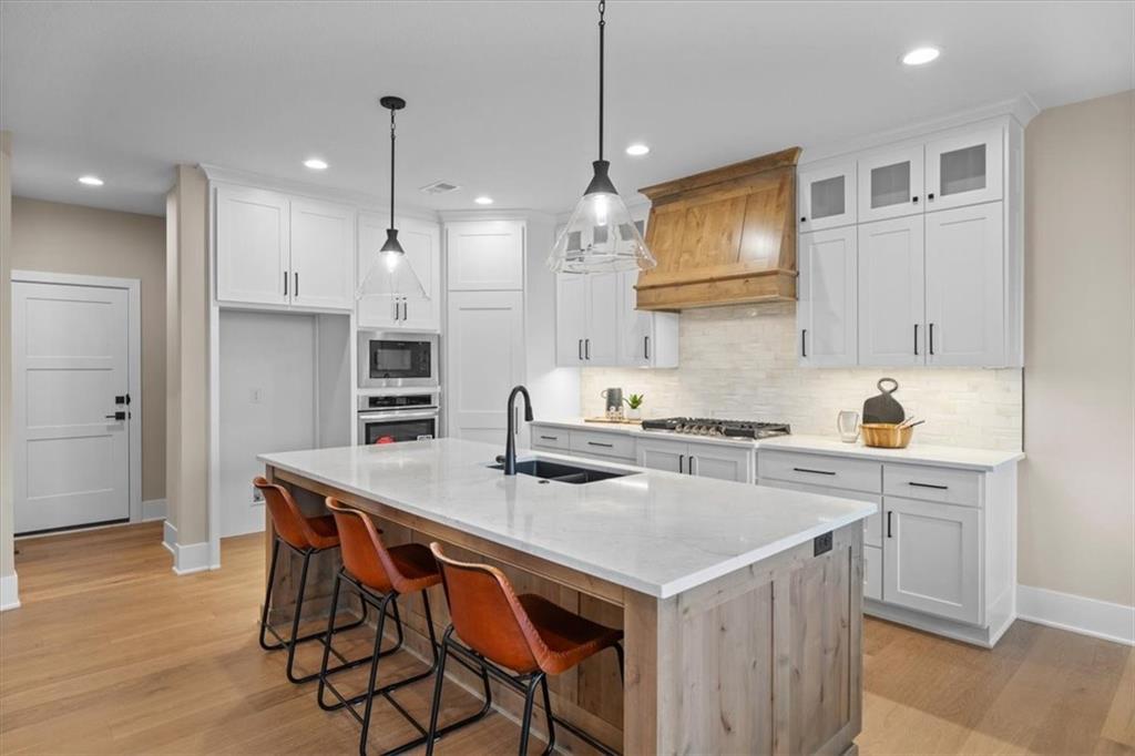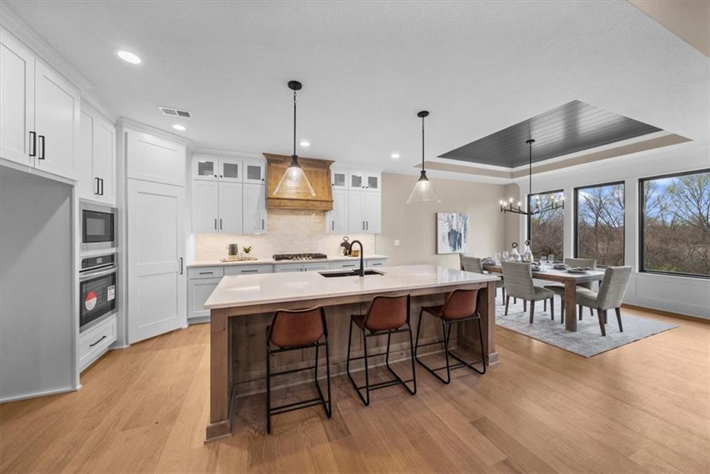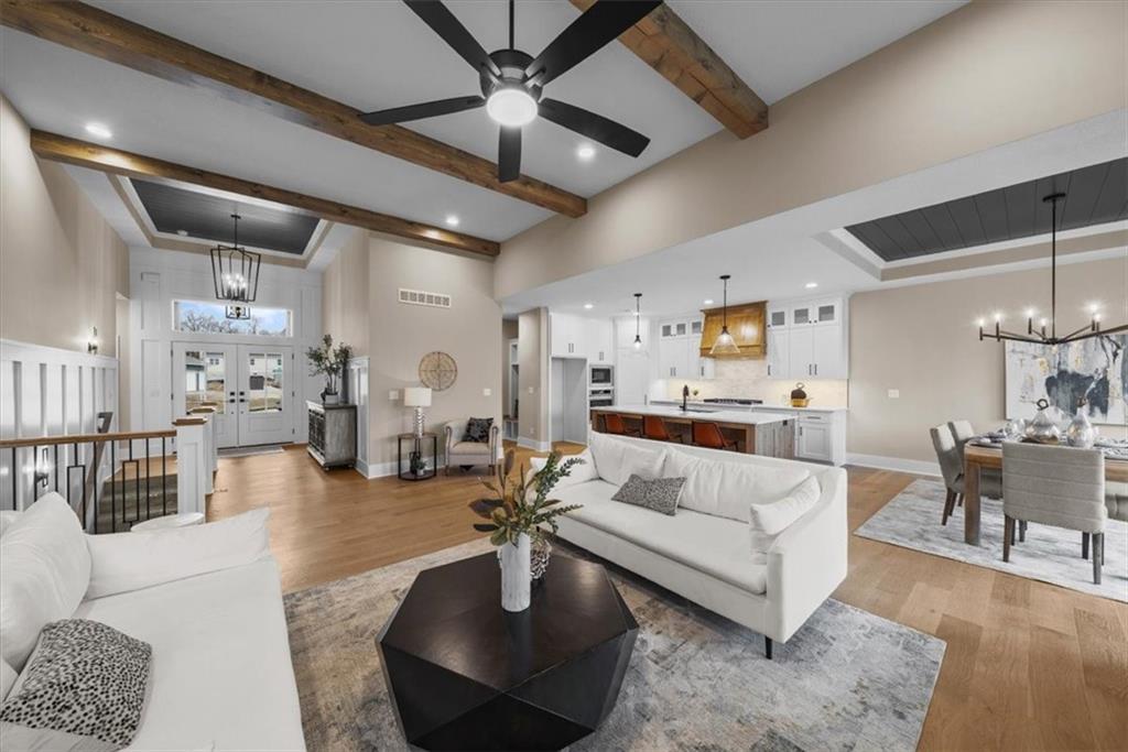 The Phoenix II by Walker Custom Homes is a stunning Reverse 1.5 Story home offering 4 bedrooms and 3 bathrooms on a serene walkout lot backing to greenspace. This home is designed with beautiful details and offers an exceptional outdoor living experience, complete with a wonderful fireplace on your back deck. The great room features enormous windows that showcase the see-through fireplace. The home is spacious and open, featuring vaulted ceilings throughout. The gourmet kitchen is designed for both functionality and style, making it perfect for everyday living and entertaining. The luxurious master suite includes a freestanding tub, designer tile, and a spacious layout that provides both comfort and elegance. Located in Hook Farms, Hunt Midwest’s newest and fastest-growing Lee’s Summit community, this home offers access to over 65 acres of green space, a community pool, wooded walking trails, and an upcoming community garden. The community is part of the highly rated Lee’s Summit school district.