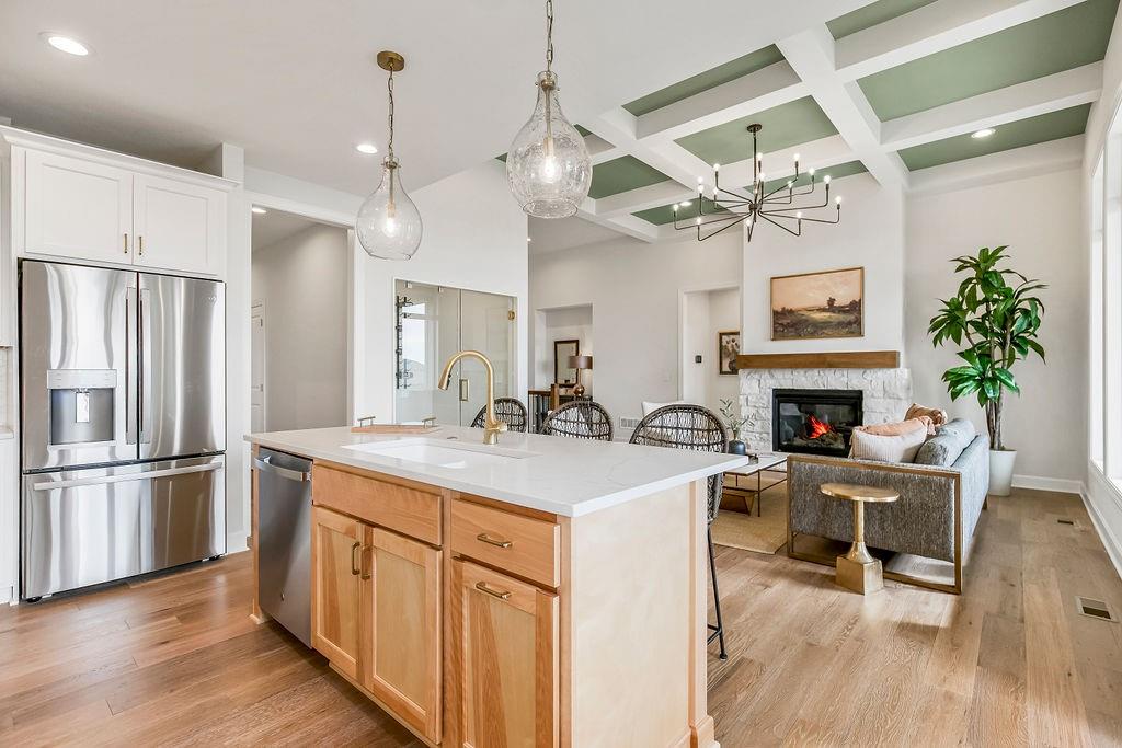 AWARD WINNING PLAN " THE ASTER" MAINTENANCE PROVIDED VILLA BY RODROCK HOMES. This is a reverse style home with 4 bedrooms and 3 bathrooms, finished area approximately 2,757 sq. ft. This home has 2 bedrooms on the main level and 2 on the lower level. The Aster boasts quality craftsmanship. A primary suite situated on the main level that goes beyond the expected. Boxed ceiling treatment in the great room highlights a floor to ceiling fireplace. Loads of windows create this open and bright floorplan. Situated in the heart of Overland Park, Kansas, Mission Ranch has earned its reputation as one of the top-selling new home communities. Adjacent to Sunrise Point Elementary and less than a mile from Blue Valley High. With quick access to 69 Highway and major thoroughfares. Minutes from the Bluhawk Sports and Entertainment complex, Corbin Park, Town Center Plaza, Prairiefire, and Scheels. Mission Ranch was designed around lifestyle and connection-attributes that have made it one of the most desirable new home communities in South Overland Park. The community has a wonderful clubhouse that features a party room, and an exercise room and a pool with a slide. Additional amenities include pickleball, sport court, bocce ball, play area, picnic area, and trails. The maintenance includes opening and shutting the sprinklers, 6 chemical treatments, mowing, seeding and trimming the bushes in the front. We will also shovel snow over 2". STILL TIME TO MAKE SLECTIONS ON THIS POPULAR PLAN. HOME IS LOCATED ON A CUL-DE-SAC STREET ON A DAYLIGHT LOT. Photos and Tour are of a previously finished model home and may depict upgrades/options not included in purchase price. Act Fast! Final new homes and homesites selling now!