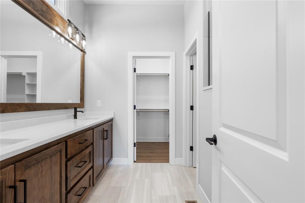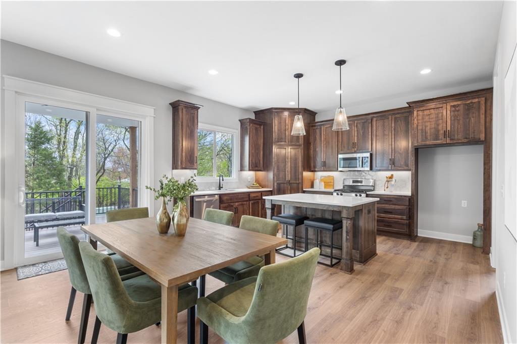 Back on Market, NO fault of Seller. This home is Move in Ready and priced well below reproduction! Hard to find Reverse 1.5 Story under $500k AND situated on a daylight lot backing to trees. Better Hurry!! NO BACKYARD NEIGHBORS. The gorgeous Danbury floorplan by Inspired Homes is a MUST SEE. Affordable, high quality main floor living at its finest featuring 10ft ceilings throughout main floor, a wide-open living area that overlooks your large, covered deck with stairs to a lower patio! Kitchen features custom cabinetry, walk-in corner pantry, extended kitchen island, upgraded appliances and quartz & granite countertops! Main floor primary bedroom/bathroom suite has trayed ceiling, spacious shower and large walk-in closet. Owner's entry features custom, built-in desk and boot bench. Main floor laundry located right off the owner's entry. Your finished lower level includes 2 large bedrooms, plus full bathroom, spacious rec room and large unfinished space perfect for storage. Extended garage bays give you ample space for cars plus more. This home is situated in the quiet, picturesque neighborhood of Kensington Farm, surrounded by mature trees, in Cass County with a Lee's Summit address. Plenty of designer features to enjoy including large custom windows that flood the home with natural light, custom cabinetry, popular “Rev Wood” flooring, GE appliances with gas range, tiled shower in Master bath and mud room/boot bench area with built-in desk. Irrigation system + garage door openers included!