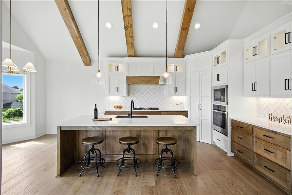 This is The Chateau, where luxury meets comfort. It’s the dream home you have been looking for in The Estates at Knoll Creek, Raymore, MO. This stunning new home by Signature Builders KC, LLC, offers 4 bedrooms, 4 bathrooms, and an array of custom details and designer upgrades. Enjoy peaceful mornings on the covered front porch or large covered deck, which overlooks the community pond. The master suite is a true retreat, featuring a beautiful feature wall and serene backyard views. The spa-like bathroom includes a unique wet area with a walk-in shower and a freestanding soaker tub, along with a spacious master closet connected to the laundry room for added convenience. The finished basement boasts a full bar, an expansive family room, 2 additional bedrooms, 2 bathrooms, and ample storage space. Raymore is known for its welcoming community, excellent schools, and convenient access to shopping, dining, and outdoor activities, making it the perfect place to call home. This property combines modern luxury with small-town charm—schedule your tour today!