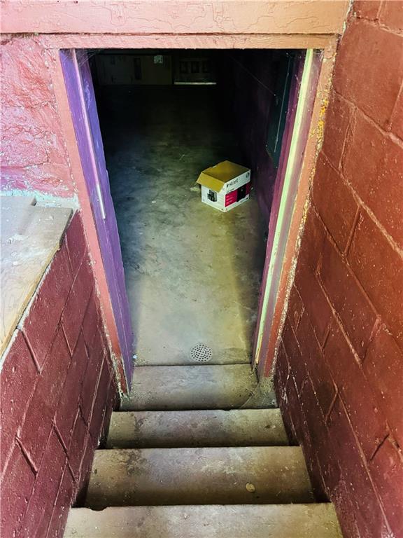 Stairs featuring wood walls and hardwood / wood-style flooring