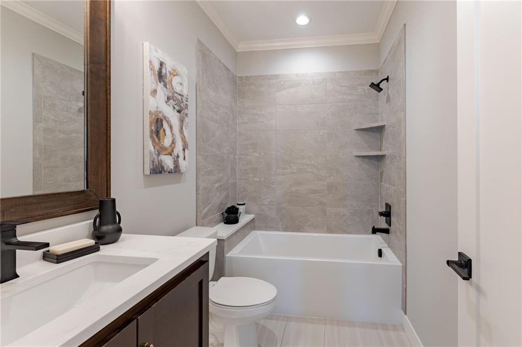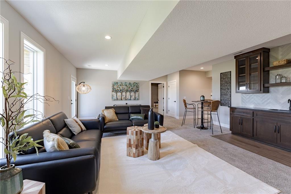 Show your distinctive buyers looking for a quality built custom home that is built with them in mind! You do not want to miss the custom finishes in this one and a half Story Triumph plan which features 5 bdrms, 5 baths on a corner lot! This home is an organizer’s dream with tons of storage space!! Oversized painted 3 car garage with epoxy floor, extra large utility storage, custom closets, appliance cabinet in walk-in pantry, pull-out shelves in kitchen, Linen dresser in Master bath with large double vanity, walk-in shower. Open floor plan with lots of tile, hardwoods, quartz counters. Bedrooms 3 & 4 share loft space but each have their own bath. Finished basement boasts a bar, 5th bedroom and bath, with lots of space for entertaining. Covered deck outside with private patio area below. This home has many custom finishes and details! Home is complete and ready for occupancy.