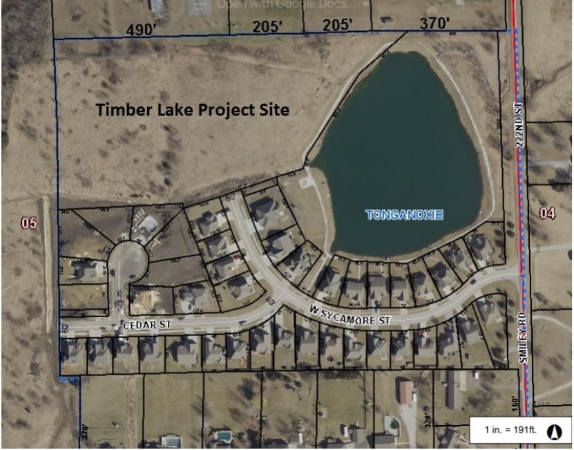 Heading west on State Ave/40/24 Turn right onto Smiley Rd go 0.7 mi Turn left onto W Sycamore St. go 0.2 mi to 22323-22305 W. Sycamore St. Tonganoxie, KS 66086. You can access property from there at the dead end or walk east toward the lake and enter from the lakeside.