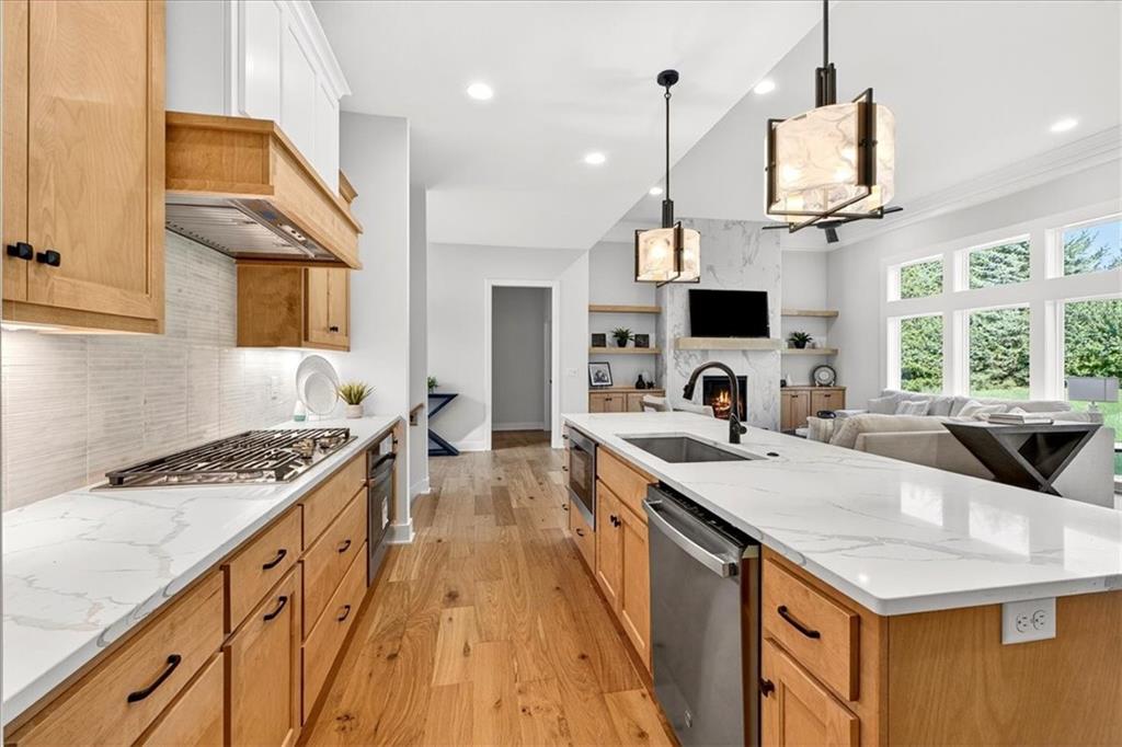BUILDER MODEL CLOSE out!!! Steel Creek STUNNING ranch/reverse plan with full finished basement on beautiful private lot! Upgrades galore, prepare to be impressed with this large open floorplan with tons of light and designer decor. Kitchen will WOW you with upgraded quartz countertops and designer tile. Primary bedroom and bath with amazing walk in closet! 2 additional bedrooms on the main level (use one for an office!?). Head downstairs to find the incredible rec room and GORGEOUS full bar for all your entertainment needs PLUS large 4th bedroom AND BONUS room!!! Overland Ridge is a Julian development offering a fantastic location, community pool and beautiful setting and great location. Do not miss this quality built home- tour today! More photos coming soon!