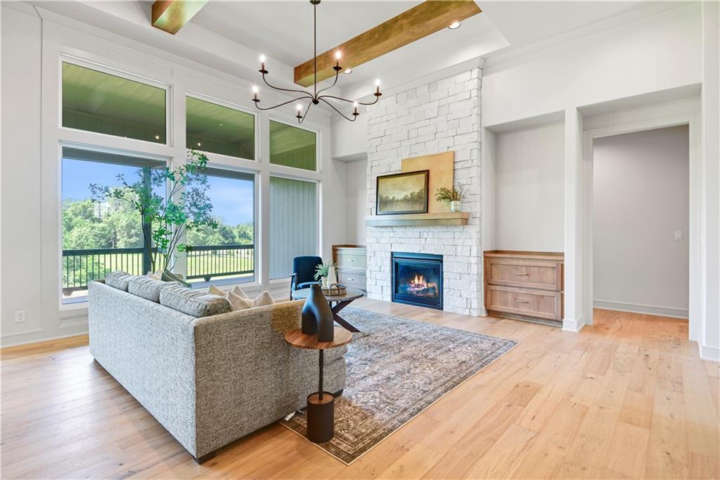 Move-In Ready! Stunning Jefferson II Reverse 1.5 Story by Bickimer Homes on a lovely walk-out lot backing to green space & tree-line! This 4 bed, 4.5 bath showstopper is packed with thoughtful upgrades and stylish finishes throughout. Enjoy a spacious open-concept layout with soaring ceilings, tall windows, gourmet kitchen featuring upgraded quartz countertops, Kohler Silgranite sink, oversized Step Shaker island, and stainless appliance package. The luxurious main-level master suite includes a spa-inspired bath with upgraded tile and fixtures. Entertain with ease on the covered deck or cozy up next to the F/C stone fireplace with custom built-ins. Finished walkout lower level rec room ft. front/back wet-bar, 2 bedrooms & 2 full baths. Additional features include hardwood floors in the study and stair landing, designer stair carpet and double front doors. This home combines elegance, comfort, and convenience! This home sits upon lot #10 in The Enclave @ Manchester Park. This wonderful community is walking distance to elementary school, has neighborhood pool, and is within very close proximity to everything else you'll need!