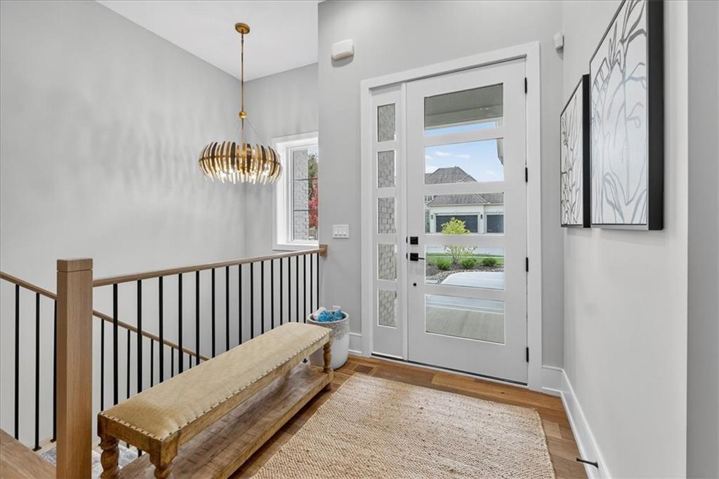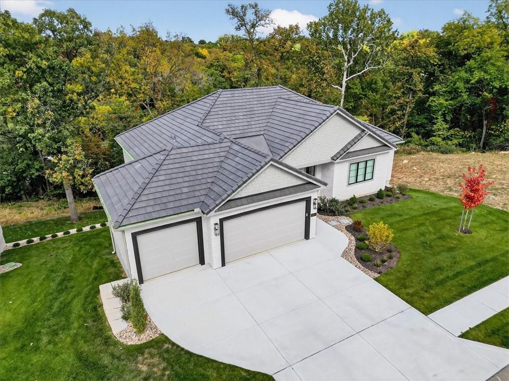Award-winning plan! Absolutely lovely Homes By Chris, reverse 1-1/2 story. Quality throughout! 1Parker plan with walk-out lower level on treed lot. Primary bedroom suite w/ laundry in closet. Second bedroom on main level! Great room with Fireplace and views of trees. Blinds throughout! Security system! Terrific kitchen with fabulous, upscale appliances (including fridge), commercial-type hood, large, walk-in pantry (could have computer station), beautiful painted cabinets, Induction cooktop. Stunning! Large dining area! Convenient dry bar for entertaining. Enjoy morning coffee on the covered deck with fan! Useable mudroom with cubbies! "Zero-entry" to front door as well as back door from garage= no steps! Much natural light and tall ceilings. Lower level with REC room and wet bar, and two additional sizable bedrooms. Walk out to trees and covered patio! Homes by Chris = top quality--enjoy the beautiful lights, fans, plumbing fixtures. Tile roof and low-maintenance exterior! The Reserve consists of 3 streets, of one large cul-de-sac! This is the maintenance provided area of Riss Lake with additional $245/month that includes mowing, weeding, chemical applications, sprinkler maintenance, snow removal, and more. Enjoy many Riss Lake amenities including 3 pools (& splash pad), tennis/pickle ball, walking trails, playground, boating, sailing and fishing on the lake, more!
