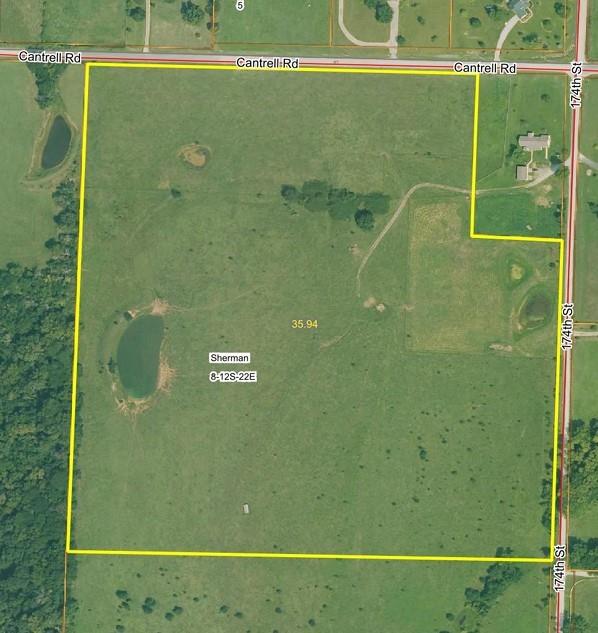 Almost 36 Acres of beautiful grass pasture. Fenced and cross fenced. Build your perfect dream home. Great place for all your livestock. There is natural gas, rural water and fiber on the property and electricity available very close by. This beautiful land can be split several different ways into small acres for the investor. Zoning will allow 5 - 2.5 acre lots to be divided off the north line that runs along Cantrell Rd. Seller was told water and natural gas would be available for those splits. There are other split possibilities as well. There are 2 fresh water ponds on the property. Whether you are an investor or someone who wants to live in the country and not be far from town (Linwood, Basehor, Tonganoxie, Bonner Springs and even Lawrence) with a great school system (Linwood/Basehor) this is a must see property. Dreams do come true! Call us today, we can make it happen!