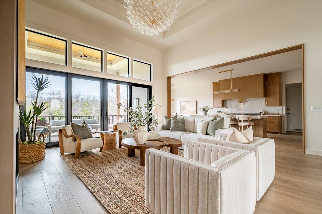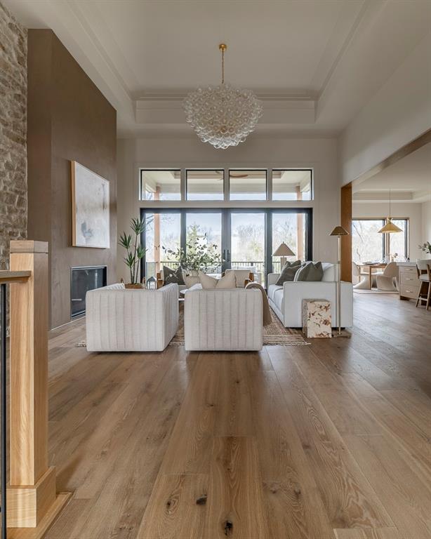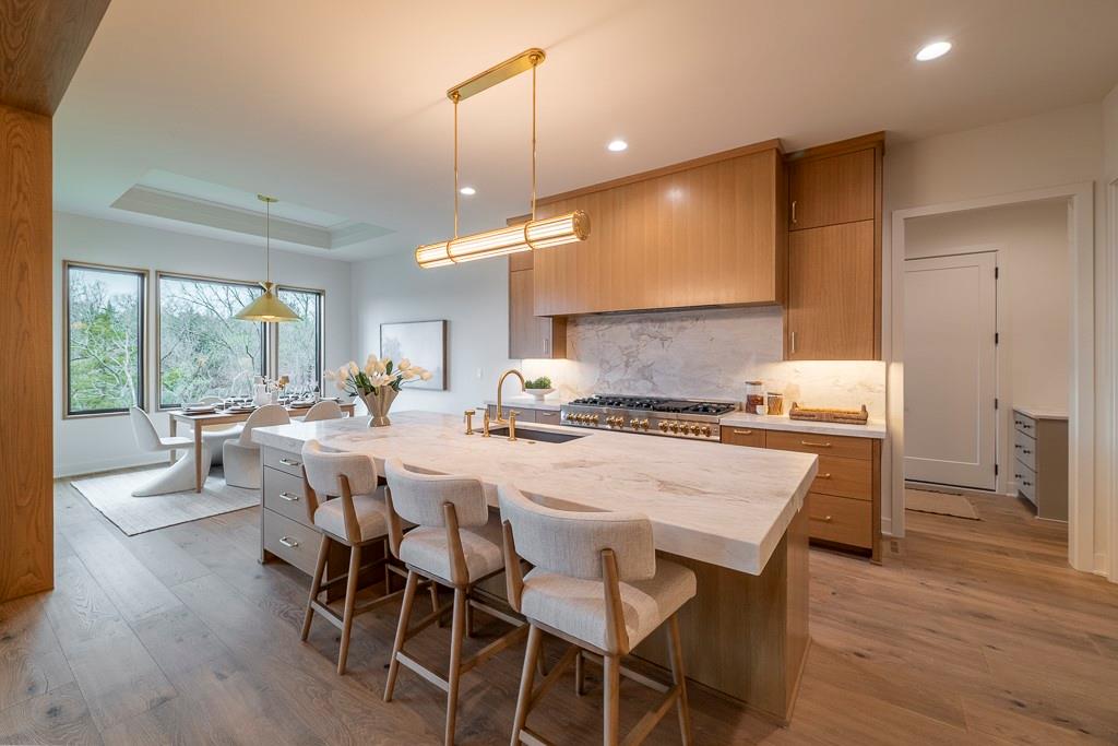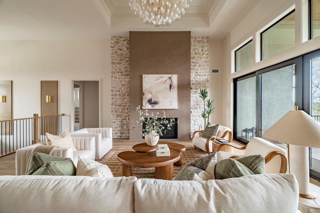 Welcome to The Estates at Canyon Oaks - Cedar Creek's newest premier estate lot community! JW Build brings their sensational new Adero plan with 5 beds and 4.5 baths to a beautifully landscaped lot that backs to lush forest and wildlife. You will be wowed from the moment you drive up. Designed by Jennifer Bertrand, this home was built with top of the line finishes and has stunning upgrades throughout from flooring, lighting and plumbing fixtures, countertops to appliances and more. The open floor plan and soaring ceilings with abundance of windows will be sure to impress. Gourmet kitchen with 10 ft island, gas range, custom cabinets and large walk-in pantry. Primary suite on main level offers privacy and serenity in the huge bathroom with double sinks, fluted tiled walls, soaking tub, beautifully tiled shower and a generous walk-in closet with custom cabinetry that conveniently connects to the laundry room. The main level also features a second bedroom with private bath and an office/den/study. The lower level offers over 3000 sqft of additional finished space with three bedrooms, 2 full baths and a spacious recreation room with a wet bar with sink and island, and a large wine cellar - perfect for entertaining. Walkout onto the secluded covered patio or deck and take in the treed view. This home has it all and with the added benefits of Cedar Creek's amazing amenity package that includes access to 65 acre lake, clubhouse, 3 neighborhood pools, lit tennis and pickleball courts, walking trails and more!