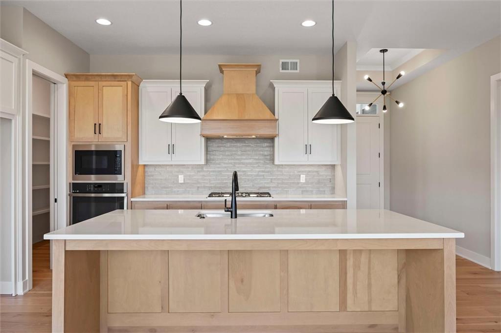 MOVE IN READY -Discover the exceptional craftsmanship of Lamendola Custom Homes with The Aiden Expanded, located on Lot 99. This stunning 4-bedroom, 3-bathroom reverse-story home offers an impressive blend of style, comfort, and functionality. The main level features a beautifully designed kitchen, an inviting great room, a serene primary suite, a secondary bedroom that can double as an office, a convenient 3/4 bath, and a well-placed laundry room. The lower level expands your living space with two additional bedrooms, a full bathroom, a spacious family room, and an impressive bar complete with a large island—perfect for entertaining. Situated on a daylight lot with a covered deck, this home also includes an oversized garage with 8-foot garage doors for added convenience and versatility. Come experience the quality and elegance this home has to offer! Close to schools, highways, shops and restaurants! Come check it out! THIS HOME IS MOVE IN READY.