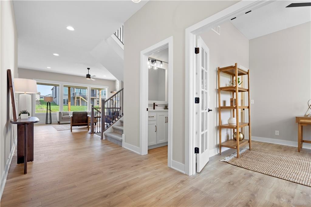 $10k Builder Incentive for closing costs or rate buy-down assistance if you close before 12/31/25! Move in Ready! The Inglenook by Inspired Homes features a stunning Modern farmhouse exterior, oversized porch and black metal roofing. Large flat lot and yard is perfect for evening BBQ's on your perfectly large, covered patio. Unique and fantastic layout with all of the rooms you are looking for. Glass doors as you enter your home office with walk-in closet to store all of your office paperwork. Office can double as main floor 5th bedroom. Main floor features 10 ft ceilings and large picture windows. Large kitchen with high end finishes, quartz counters, built in appliances with gas cooktop, upgraded lighting, under counter lighting, oversized walk-in pantry and opens to and even larger great room that features custom built in's next to fireplace. To die for breakfast room with panoramic views and custom X-beam ceiling detail. Rare and oversized 3 car garage fits your TRUCK or LARGE SUV! 2nd floor is equally as impressive. Large bedrooms on second floor all featuring walk in closets. Master suite with high end master bath and closet and convenient 2nd floor laundry. This home has many upgraded features and is at an incredible value. Unfinished basement is ready for a future finish with stubs for a bathroom and wetbar! Pryor Ridge Community offers its homeowners a sparkling jr-competition sized pool, playground, basketball & pickleball courts, off-leash dog park, open green space and walking trails....all within a convenient and close location to shopping, restaurants, grocers, entertainment and highway access!