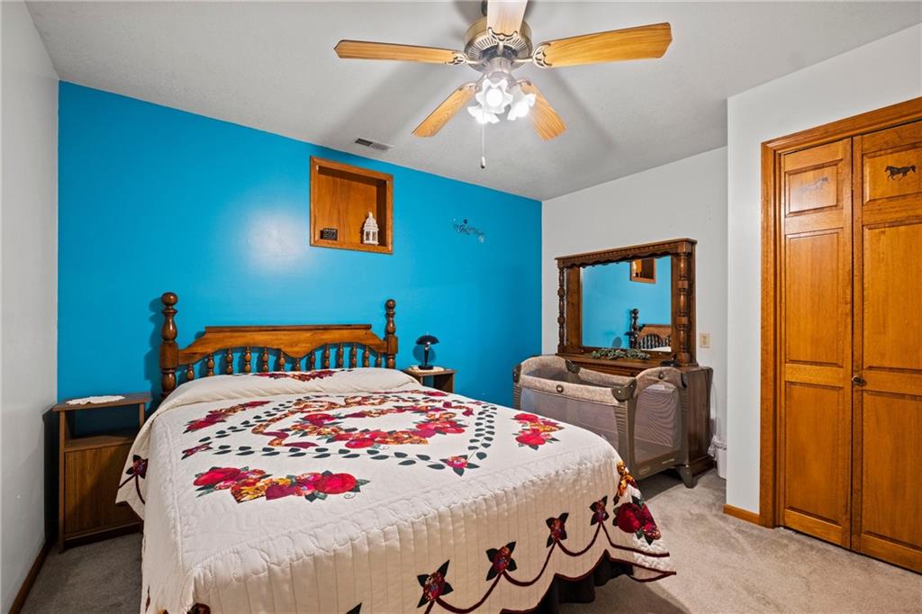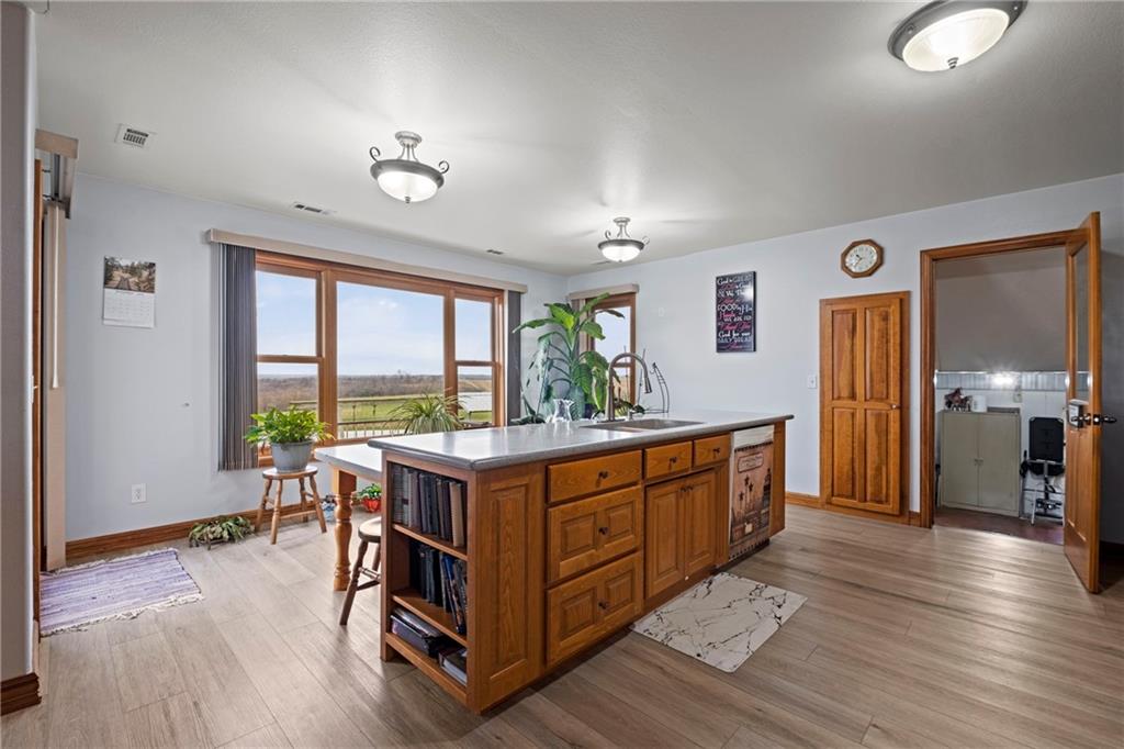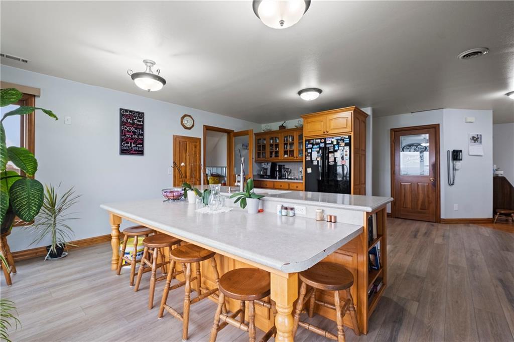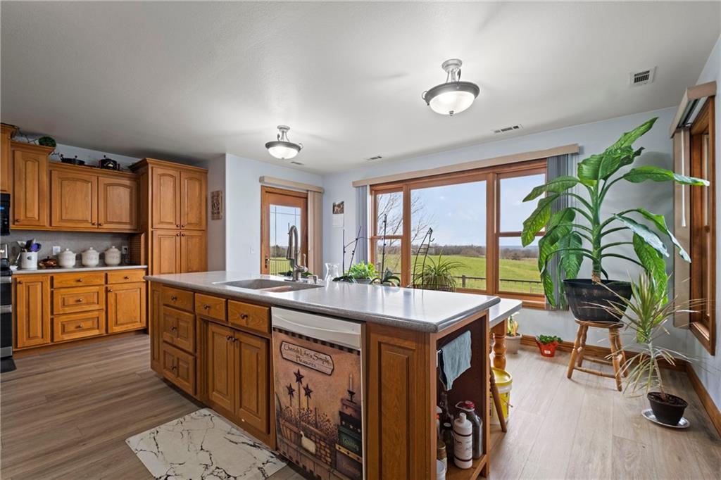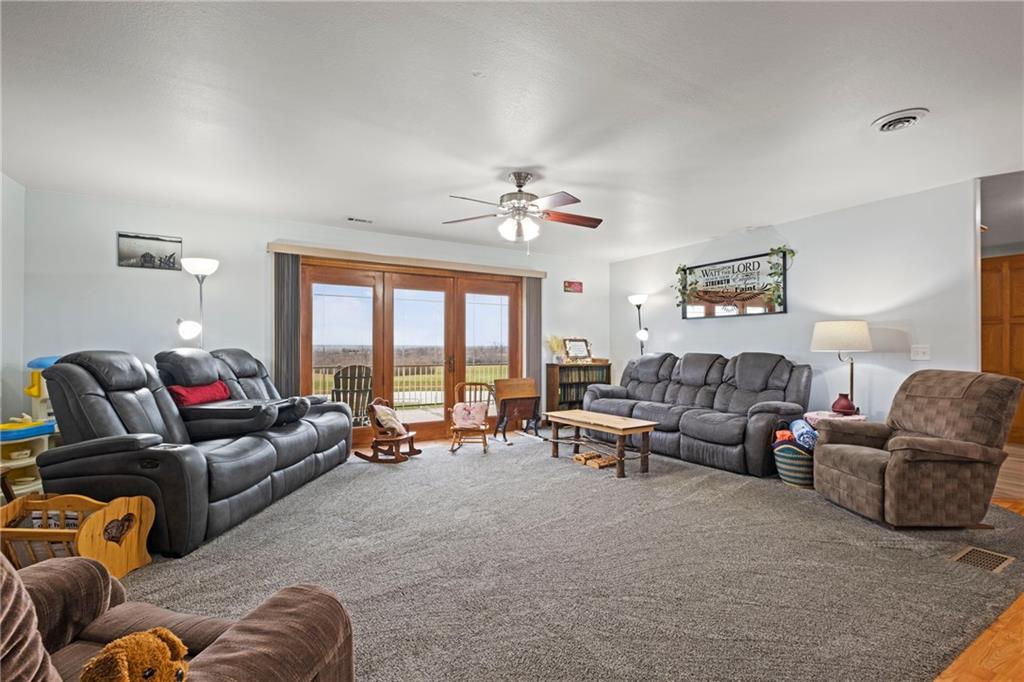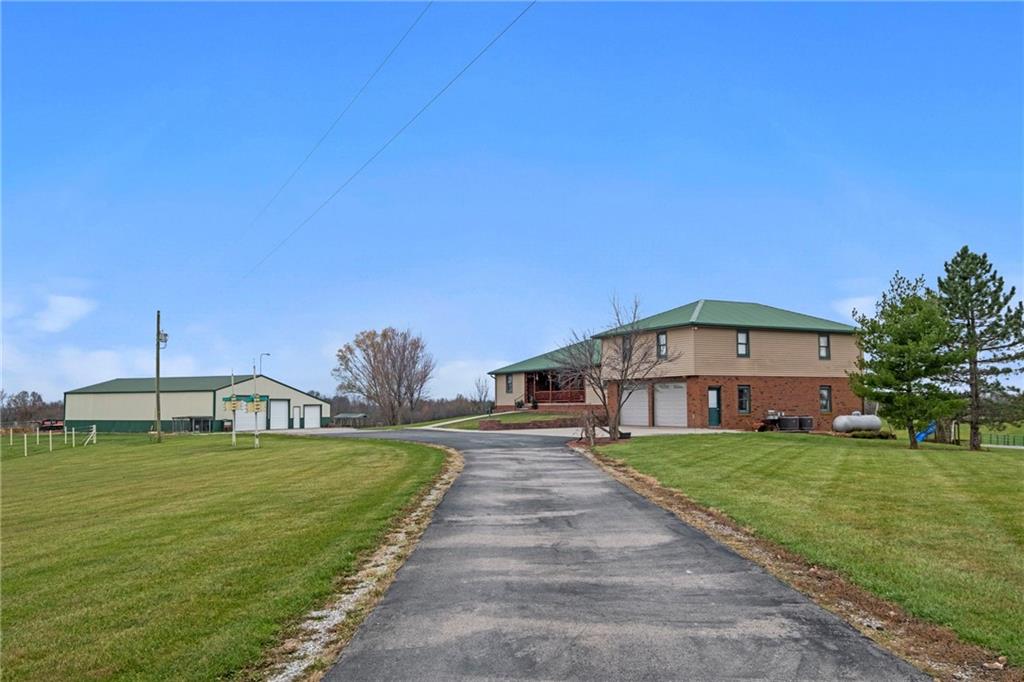 This home was so meticulously built nothing left out, discover the epitome of rural luxury with this exceptional country home, gracefully situated on 77.9 acres of picturesque land. Designed for those who cherish tranquility and the charm of countryside living, this property seamlessly blends spacious interiors with unparalleled outdoor amenities. 7 generously sized bedrooms provide ample space for family and guests, complemented by 5 well-appointed bathrooms featuring modern fixtures and finishes. Laundry shoot from upstairs bedrooms to laundry area below. An open-concept design connects the country kitchen, dining area, and living room, creating an inviting atmosphere for both relaxation and entertainment. Equipped with walk-in pantry, custom cabinetry, and a central island, the kitchen is a culinary enthusiast's dream. 2 car attached garage off front of home. Basement equipped with full kitchen, 2 bedrooms, 2 bathrooms and 1 car garage. A spacious outbuilding, 36'X72'with a 16' lean-to, provides secure storage for all your farming machinery and equipment, ensuring functionality and organization. A fully functional shop, heated and AC, 42'X96' with a 16'X96' lean-to, awaits craftsmen and hobbyists alike, offering a dedicated space for your creativity, projects and/or storage. Ample pastureland for grazing and haying, (12 acres with hay) a serene pond enhances the property's natural beauty, offering opportunities for fishing, wildlife observation, or simple relaxation by the water. Enjoy unobstructed 360-degree views of the rolling countryside, with breathtaking sunrises and sunsets that paint the sky in a myriad of colors.