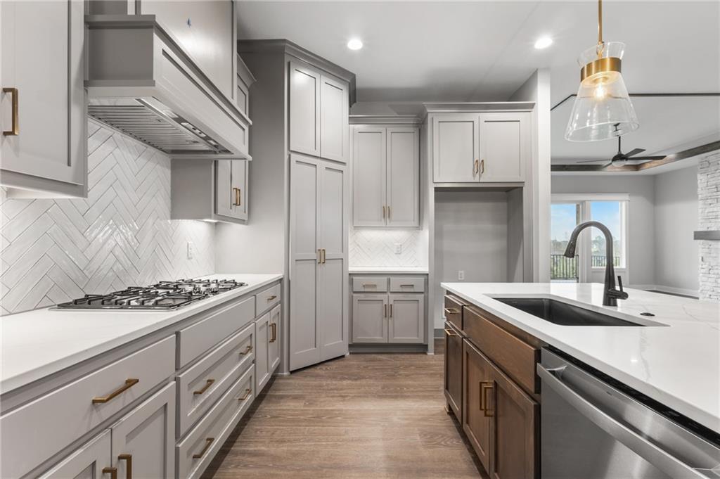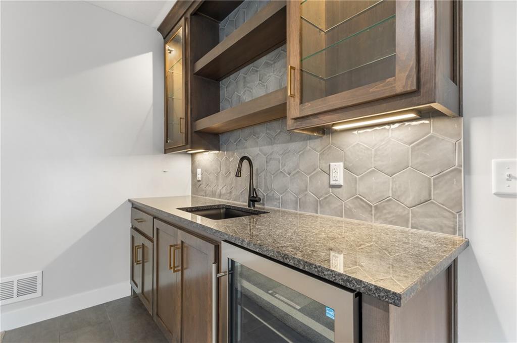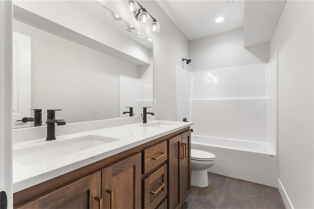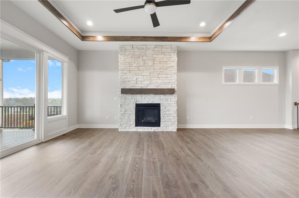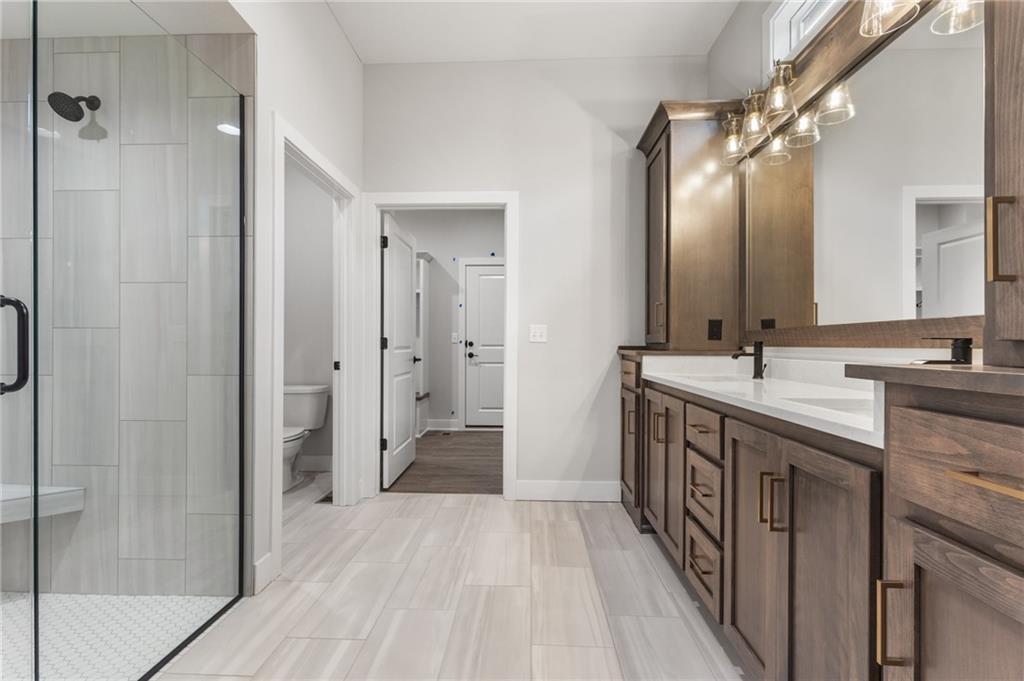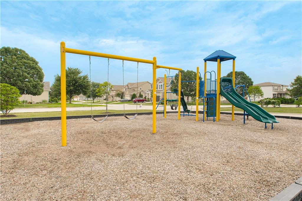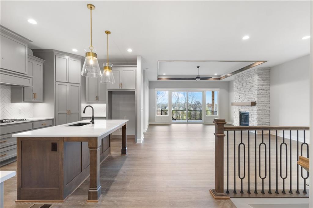 MOVE IN READY! This incredibly stunning Sonoma reverse 1.5 home offers not one but TWO primary suites on the main level, each with its own private ensuite bathroom! The main primary suite is designed with luxury in mind, featuring a zero-entry shower and a huge walk-in closet with custom shelving. Your guests will also have a powder room on the main level, ensuring their comfort and convenience. The laundry room is located on the main level, with entry from the primary bathroom, as well as an added mudroom. In addition, the home has a gorgeous kitchen with ample storage and counter space, open to the dining area and great room—a perfect gathering spot! The 10-foot ceilings on the main level are highlighted by a stunning stone floor-to-ceiling fireplace in the great room. And the lower level of the home offers the ULTIMATE entertainment area: with an oversized rec room, a modern wet bar, two large bedrooms, and a full bath, the Sonoma offers one of the best basements for family and guests to enjoy their own space--or for you to host large parties! And you can enjoy your spacious backyard from your large, covered deck with lower patio. Kensington Farms offers a sparkling pool, playground, greenspace, close proximity to Downtown Lee's Summit, Summit Fair, and all shopping and dining needs.