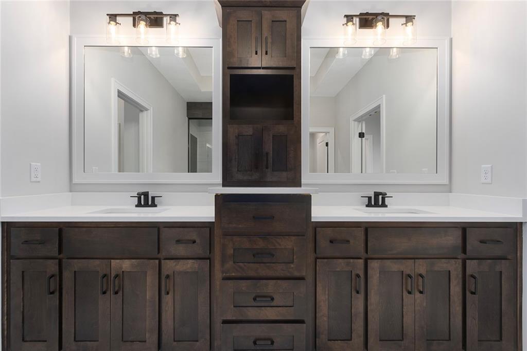 **MOVE-IN READY!** Welcome to the Catalina Reverse 1.5 plan by Crestwood Custom Homes! Fully loaded with options & upgrades. Quality & value you expect from Crestwood Custom Homes: Solid Birch cabinetry, extensive trim & ceiling details, Pella windows, all masonry stucco exterior walls, wood flooring & stunning quartz tops! Open concept plan with Kitchen, Great Room & Dining Room open to each other, tall ceilings, floor plan w/adjoining built-ins, kitchen island & walk-in pantry! Primary suite features a show-stopping, zero-entry, walk-in shower & bonus pull down clothes racks in spacious walk-in closet! Main floor also includes a versatile 2nd bedroom suite or Den & a covered deck! Finished lower level features 2 bedrooms, 1 bath, ample entertaining space & a full wet bar. 1st floor utility room adjoins primary closet & hall, battery back-up to sump pump, passive Radon pipe & sprinkler system. Photos updated on 12.2.2025. Home is NOW MOVE-IN READY!