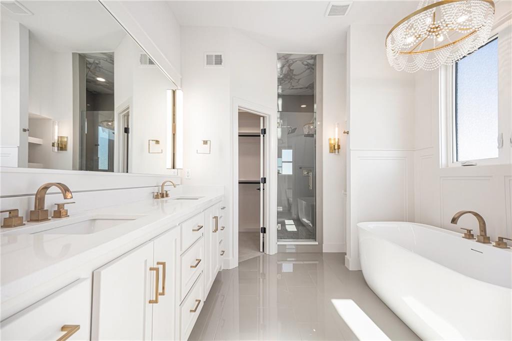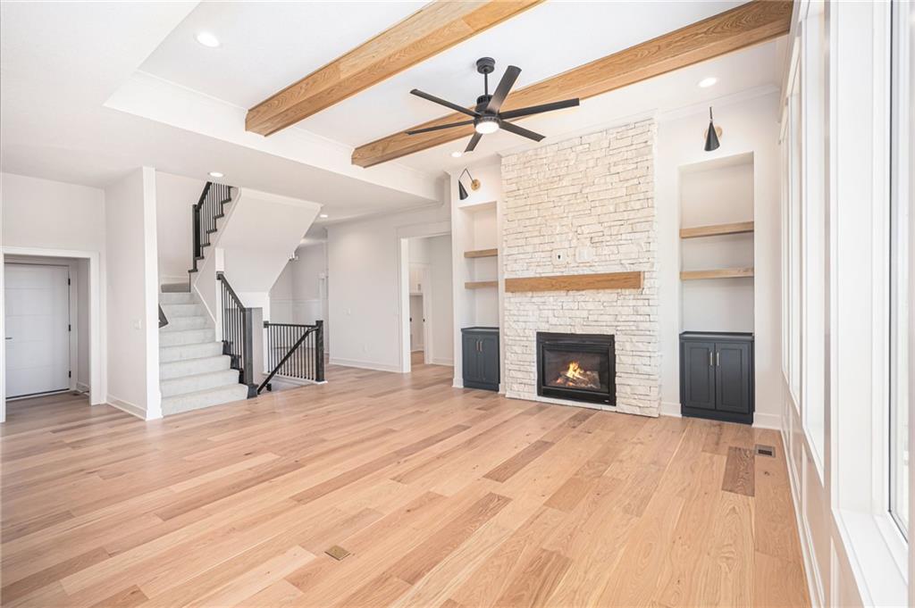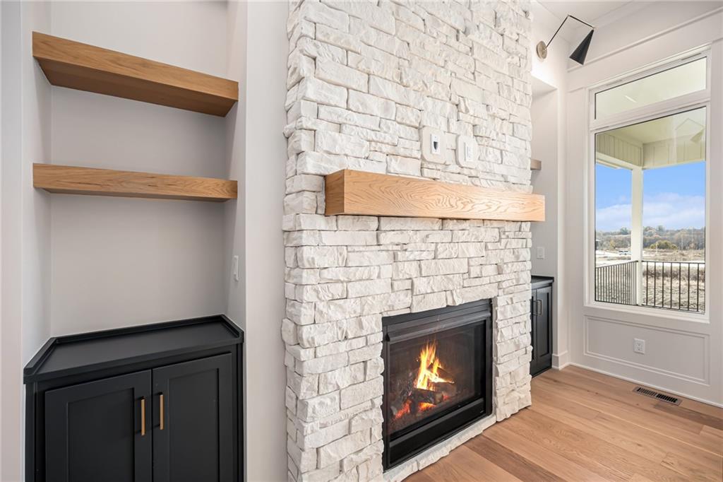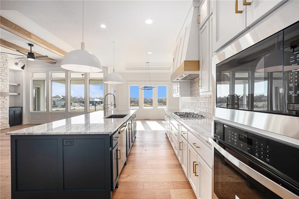 MOVE-IN READY! Located on Lot 81 prepare to be wowed by The Santa Barbara plan is one of Hilmann Home Building's newest 1 1/5 Story plans offering 5 bedrooms and 5 baths. The open main floor living features a great room with hardwood and vaulted ceiling, floor-to-ceiling fireplace, and a view to the outdoor covered living area, great for entertaining. The kitchen features beautifully designed cabinetry with a large island and granite countertops. The huge walk-in pantry / optional prep kitchen provides ample storage. The beautiful primary bath has everything you need including a large vanity space, walk-in shower, free standing soaker tub and TWO large walk-in closets. The primary bedroom has a convenient door leading to the covered porch. The main floor laundry boasts a utility sink with cabinetry and access from the main living area and the master bedroom closet. The 5th bedroom on the main floor can also serve as an office or study with access to a full bath. Each bedroom throughout includes its own bath and walk-in closet. 2nd floor features a spacious loft with fireplace plus three bedrooms each with a walk-in closet and private bathroom. Additional laundry hook-up on the second floor for convenience. Taxes are estimated. Don't miss this opportunity to own a beautifully crafted, loaded with upgrades, home in a fabulous neighborhood! Taxes are estimated. Don't miss this opportunity to own a beautifully crafted, loaded with upgrades, home in a fabulous neighborhood- minutes from our K-12 schools, highways, shops and restaurants. Models Open Daily, 11 am – 5pm, and Sunday, 12-5pm. Visit the sales office at 12411 W 183rd Terrace, Overland Park. THIS HOME IS MOVE-IN READY.