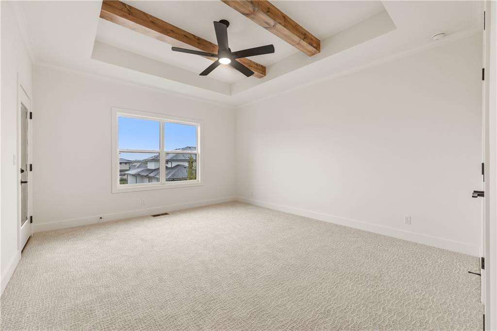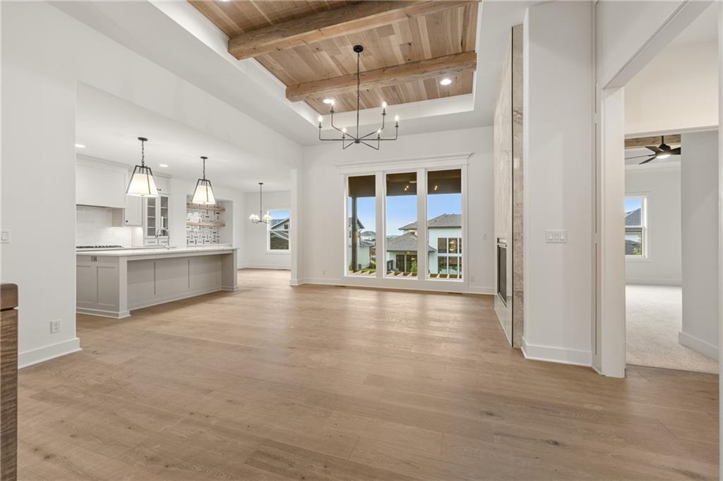 MOVE IN READY! The modern Riviera REVERSE by SAB Homes located on lot 184 in a cul-de-sac with a full finished walkout basement. You will love this new modern twist to a classic reverse floorplan at just over 3000 square-foot. with spectacular curb appeal featuring high peaks, vertical accent siding, metal accent roof, blackened bronzed windows, and super dark charcoal paint with red brick trim. Stunning! This home also features an ideal plan floor plan with a main floor primary suite and an office/ second bedroom with access to the covered 16' x 12' deck from the dining room and bedroom. Enjoy the finished walkout lower level with two more bedrooms, large family room with LVT flooring, parallel wet bar and a door to the backyard, plus plenty of room for storage. Perfect outdoor space under a 16' x 12' covered patio with full sod front and back, sprinkler system and front landscaping package included. This home is loaded with upgrades; gas cooktop, quartz countertops, decorative bath mirrors, Maxx Lounge freestanding tub, bump out in the dining area for hutch or china cabinet, boot bench at garage entry, large windows, floor to ceiling tile fireplace with accent ceiling trim in great room, vertical shiplap accent wall in the office with 3 ceiling beams, wainscoting at entry and stairwell and light wood flooring. Century Farms has a spectacular club house with a farmhouse twist ideal for neighborhood gatherings or private parties with reading loft and a fitness center. There are plenty of neighborhood activities with a fire-pit, two pickle-ball courts and a basketball hoop, kids play area, wildflower walkways and a community garden. Century Farms is conveniently located near the brand new Bluhawk shopping center, Heritage Park, the Johnson County Trail system and the Overland Park Arboretum. Come join the fun in Century Farms, a unique one of a kind upscale new home community in Overland Park. BLUE VALLEY SCHOOLS
