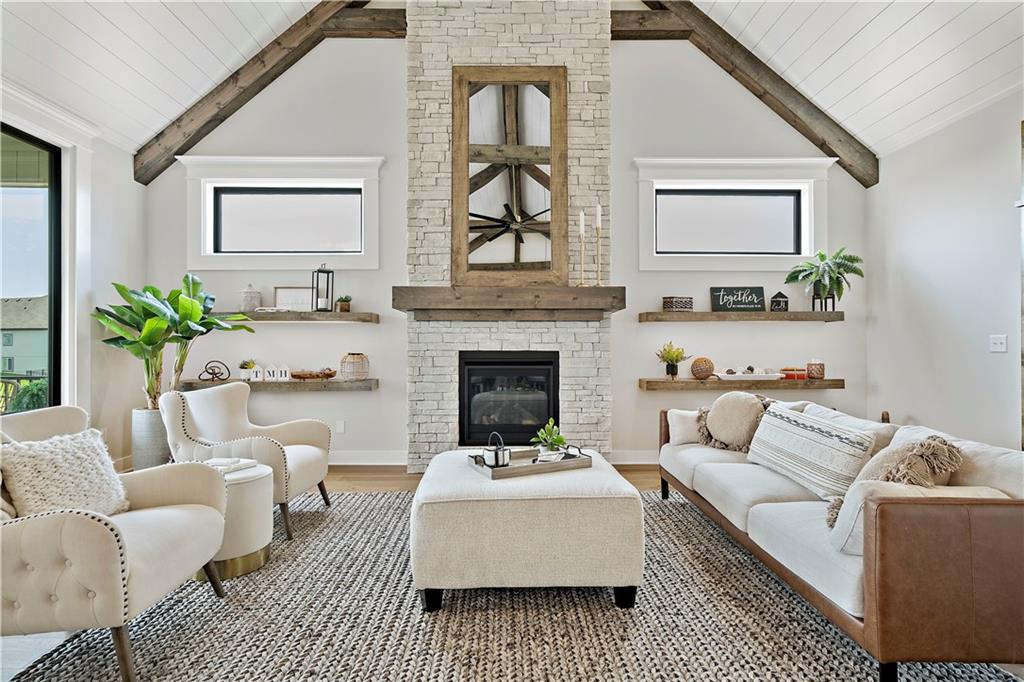 *Builder offering $5K to use however you want!* Kyle IV by award winning TruMark Homes. This reverse ranch style home comes with the bonus of a finished walkout lower level! You'll be able to enjoy the covered deck while gaining a patio off of the lower level. The great room and kitchen have vaulted ceilings with custom wood beams. The stone fireplace with floating shelves add an extra touch of wow factor to this open space. The Reserve at Woodside Ridge offers a convenient location to highway access, shopping centers, and the Rock Island Trail. The amenities complex features: a club house, pool, pickleball court, hammock garden, and playground area. The HOA dues also include trash, recycling, and paved walking trails. Pictures are of a previously finished model home.