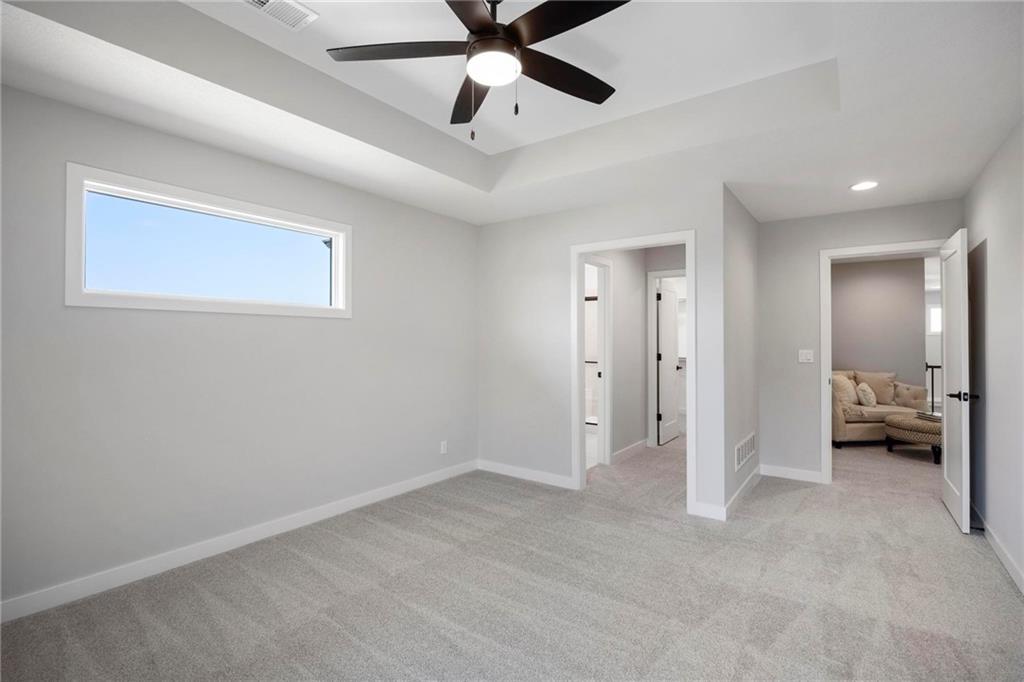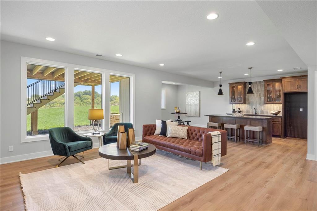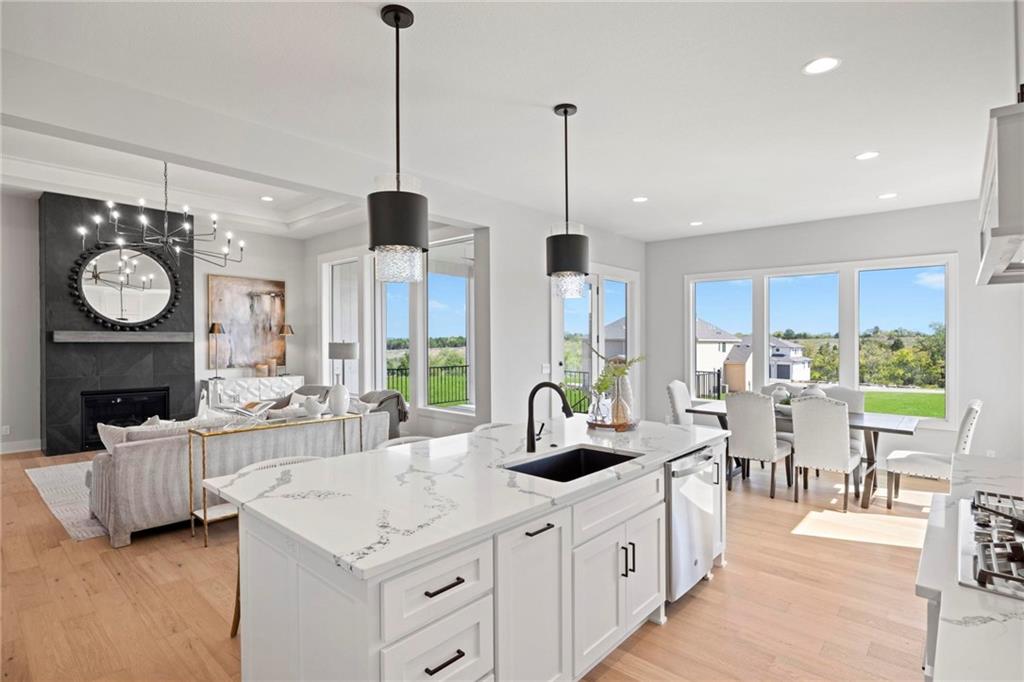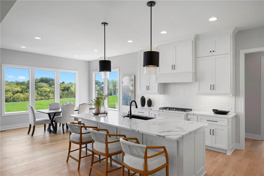Sanctuary LOT 18 - The Regency II by J.S. Robinson Fine Homes is a stunning 1.5-story residence situated on a walkout cul-de-sac lot that backs to treed greenspace. Construction costs came in favorably, so the builder is passing along the savings by a major Price Improvement!! Step inside this exquisite home and be greeted by its impressive design and impeccable craftsmanship. The main level boasts a magnificent owner's suite complete with a spa-like bathroom, walk-in closet, and a private laundry area. The open floor plan seamlessly connects the gourmet kitchen to the rest of the living space, making it perfect for entertaining guests. Custom cabinets reaching up to the 10-ft ceiling provide ample storage, while the upgraded countertop allowance ensures a touch of luxury in every detail. Hardwood floors add a touch of warmth. The home offers a main-level flex room that can be used as a home office or a versatile space to suit your needs. Upstairs, you'll find three additional bedrooms, each with its own attached bathroom. Additional 2nd Floor laundry! Plus, an approximate 17'x20' recreational loft offers endless possibilities for relaxation and recreation. Welcome to another stunning Matt Adam Development new home community. The Sanctuary is laid out to protect the natural landscape, with homesites among the most beautiful in the area. In addition to the nature trails and sparkling creek winding its way through the community, residents will enjoy neighborhood amenities such as the Resident’s Club with indoor spaces and outdoor entertainment area, and a separate zero-entry pool with a sundeck to lounge the summer away. Two pickleball courts will provide hours of fun exercise for the everyone in the household! Located in South Johnson County across the street from award-winning Blue Valley Schools. Square footage and taxes are estimates. ***Finished photos are of a similar model, pricing, upgrades and finishes may vary from model shown.***