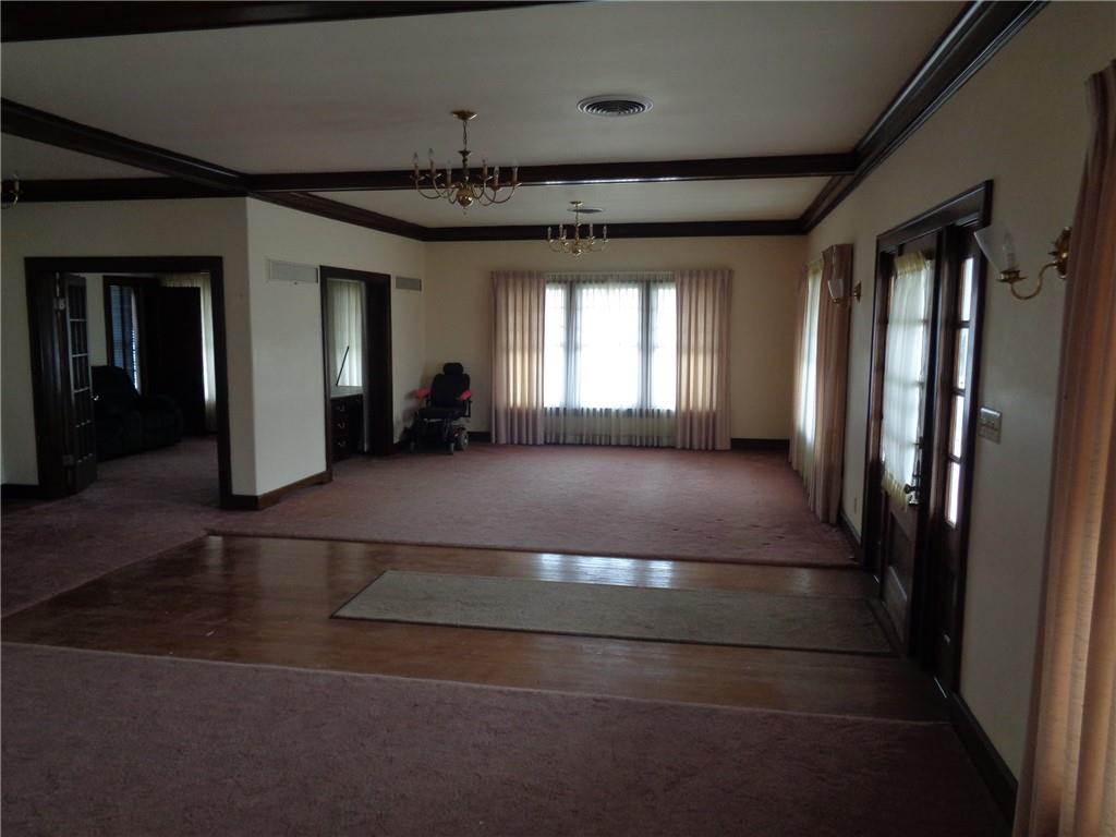 This is a great opportunity to create your dream home! Beautiful nearly all brick home provides for very little maintenance and also features an approximately five year old metal roof! The home features beautiful wide stained trim, ceiling beams and doors. Glass door features, lots of windows and space. A service elevator in the rear of the home renders this home very accessible. Build your kitchen to suit your taste! Nice corner lot with plenty of room. Four car garage with a concrete driveway. This home has a ton of potential and the exterior has an awesome wrap around porch!