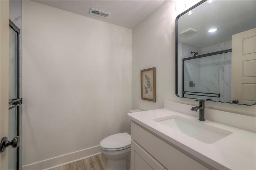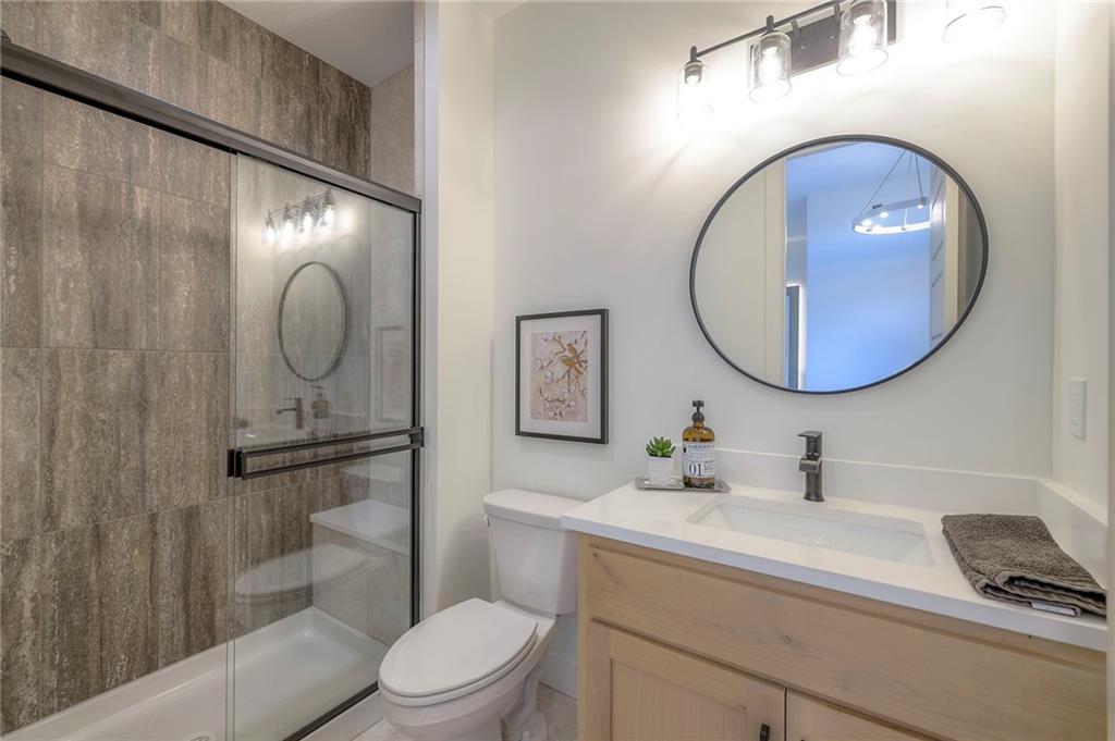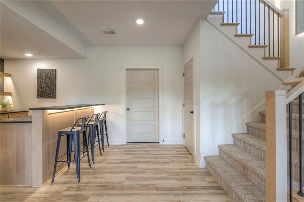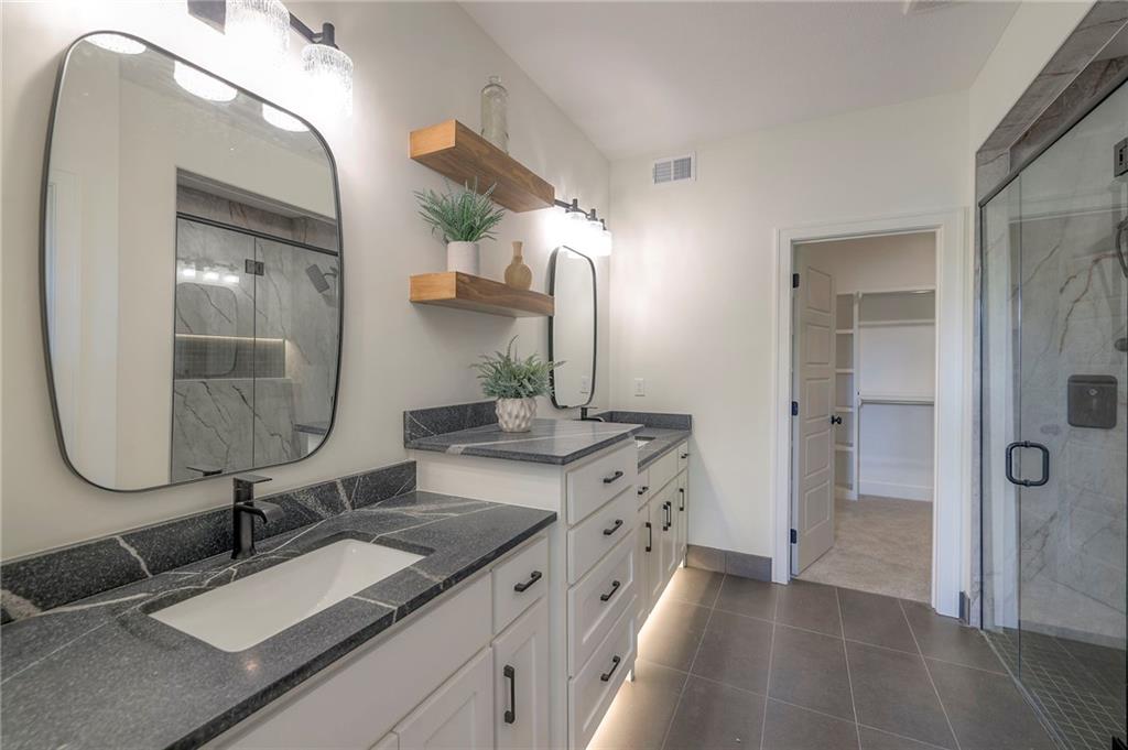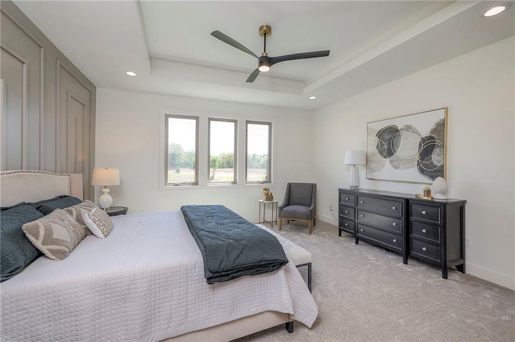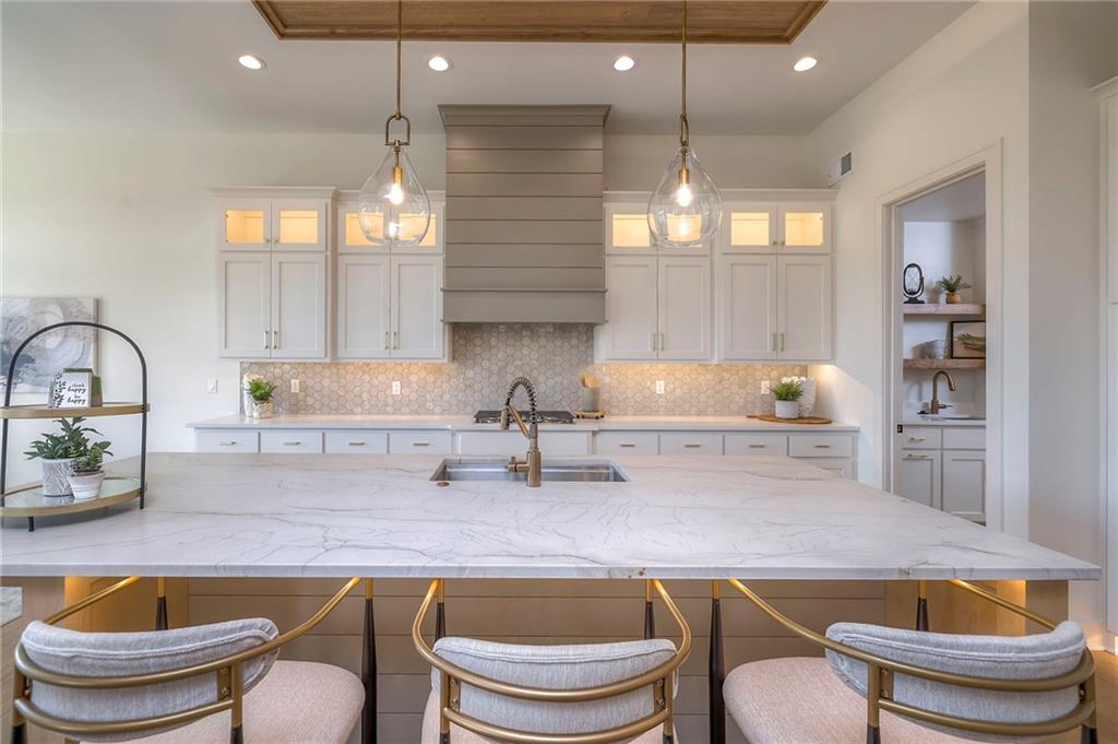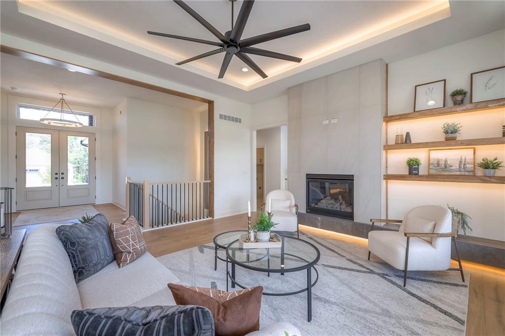 Stunning and spacious Lyle Reverse plan by Bryant Ratliff with 4 Bedroom and 4 Full Baths. Large entry greats you into this open and spacious floor plan. Great room has hardwood floors, soaring ceiling and floor to ceiling stone fireplace. Kitchen features custom cabinetry, oversized island, stainless appliances, walk-in pantry, & access to huge covered deck. Large master suite with custom tiled large shower and sizable walk-in closet with access into the laundry. 2nd bedroom and full bath on main floor. Lower level features family room w/custom tv wall, bar area and 2 additional bedrooms each w/their own baths. Walk out to a patio with large yard backing to bermed greenspace. Home is located on an estate lot and includes lawn irrigation. Home is located in Woodland Trails, an outdoor lifestyle community featuring miles and miles of paved walking trails, resort style pool, playground, sports field and fishing ponds.